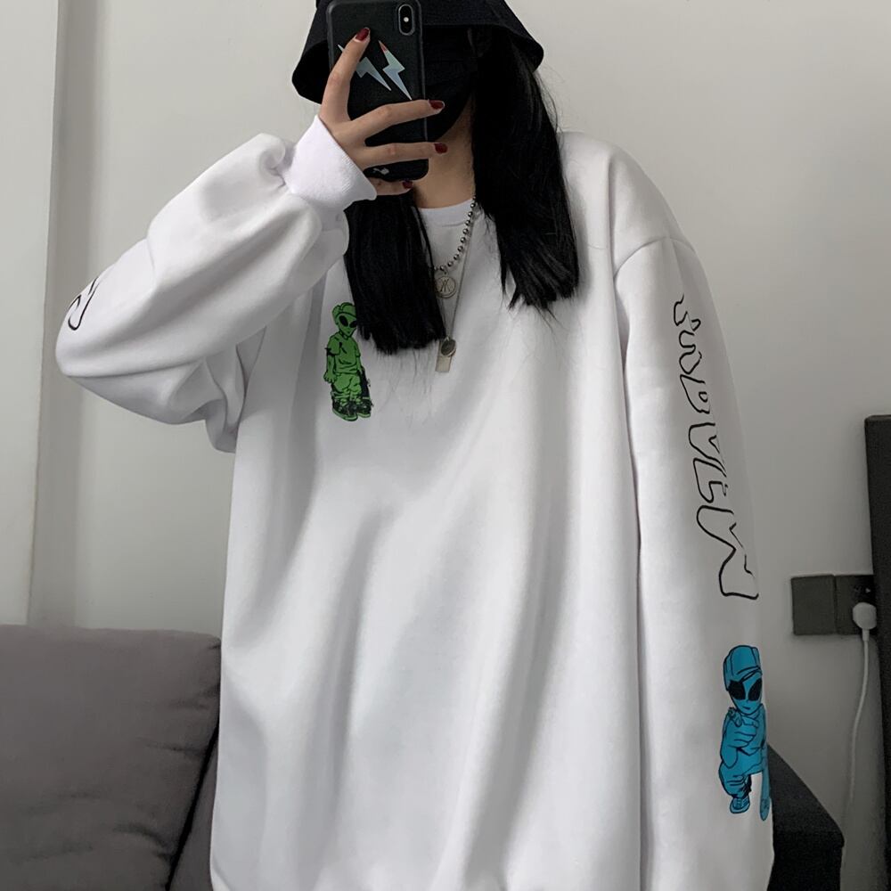 ラウンドネックセーター女性2020年秋冬新バージョン原宿スタイルルーズレタープルオーバープラスベルベットカップルトップ Brother_is_Style58664165556