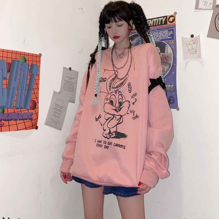 2020年秋冬新バージョン原宿漫画プリントピンクトップルーズフードプラスベルベットセーターレディーストレンド Brother_is_Style12256987561