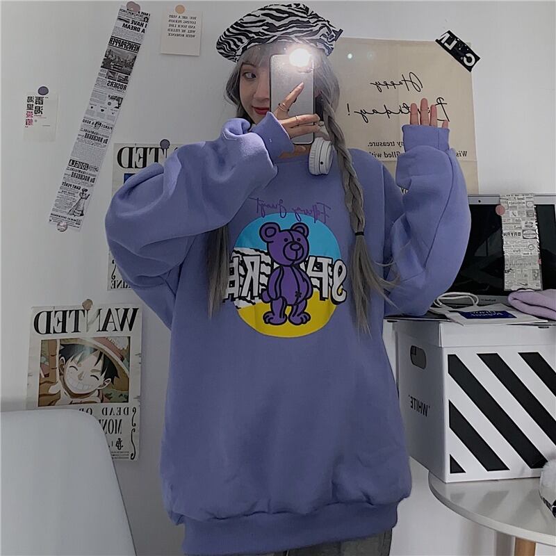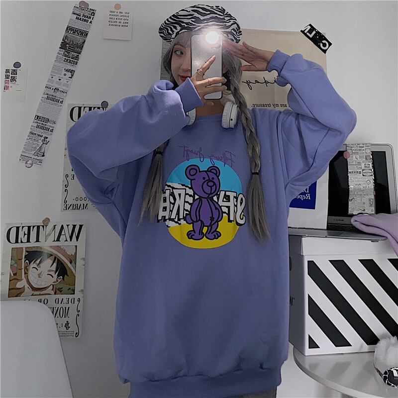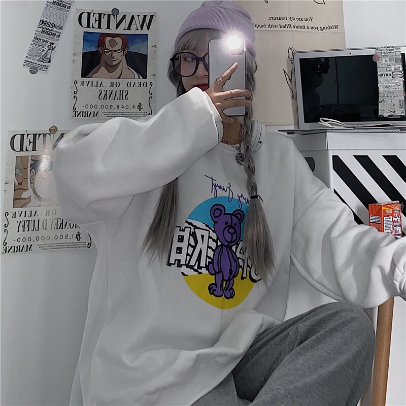 2020年秋冬バージョンのインネットレッドベアホワイト長袖シャツルーズプラスベルベットフードレスセーター女性トレンド Brother_is_Style8055439562