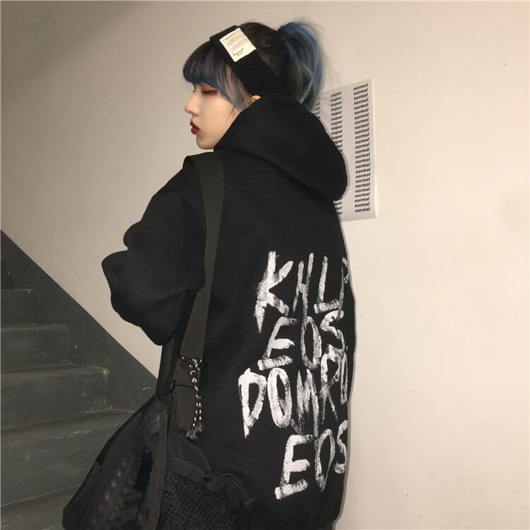 2020年秋冬新バージョンのins原宿スタイルダークグラフィティホワイトルーズフードプラスフリースジャケットパーカートレンド Brother_is_Style74012829574
