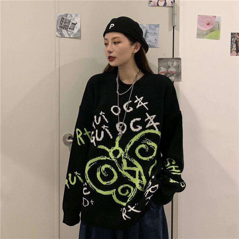 2020年秋冬の新バージョンのinsストリートグラフィティジャカードパッド入りトップルーズプルオーバーニットセーター女性トレンド Brother_is_Style89603684158