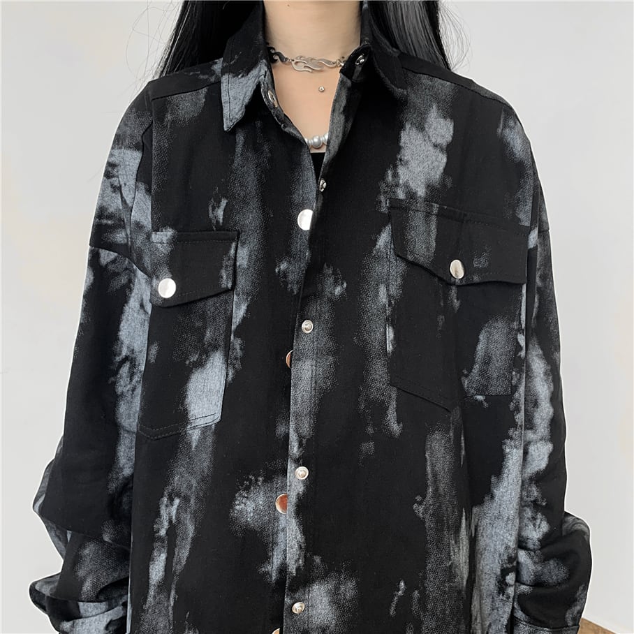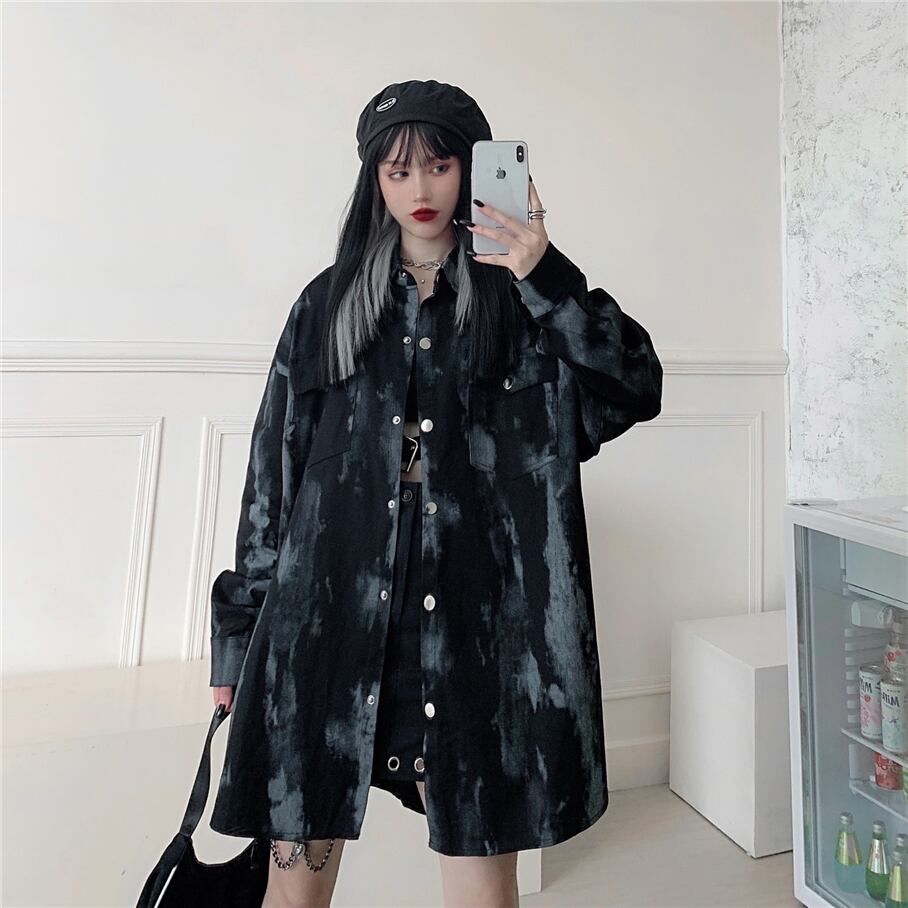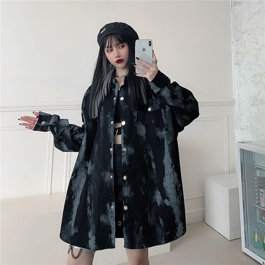 ins原宿スタイルレトロ絞り染め長袖トップルーズミドル丈シャツジャケットタイドのシャツ女性秋バージョン Brother_is_Style47480803183