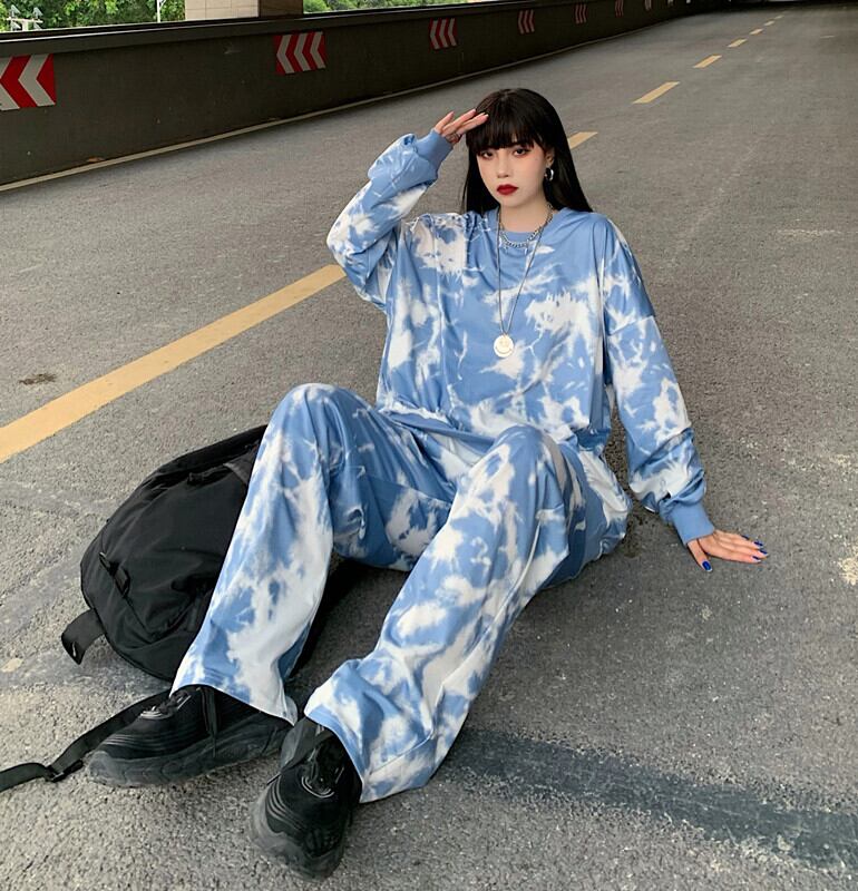 スーツレディース2020年秋新イン原宿スタイル絞り染めプルオーバーセーター+ストレートカジュアルパンツツーピーススーツ Brother_is_Style44898653249