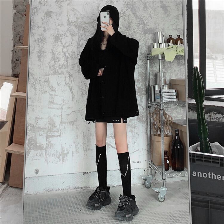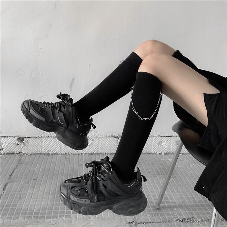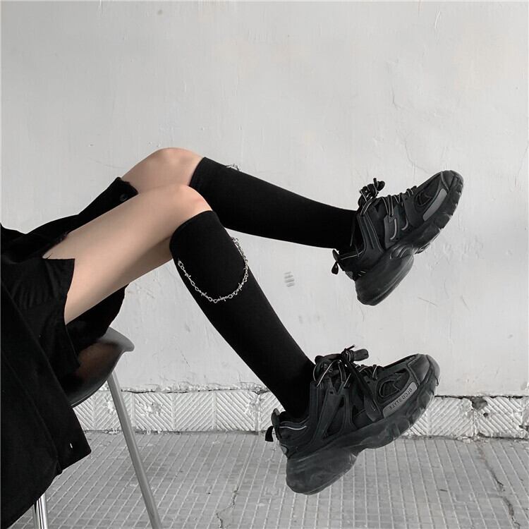 ins net red super fire dark black thorns chain calf socks ese wild black tube socks female tide Brother_is_Style15108010637