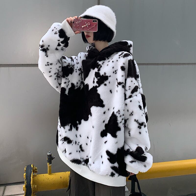 フード付きセーター女性2020年秋冬新バージョンインルーズ絞り染めラムベルベット厚めプラスベルベットジャケットタイド Brother_is_Style22654812357