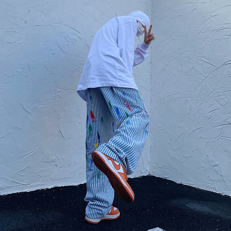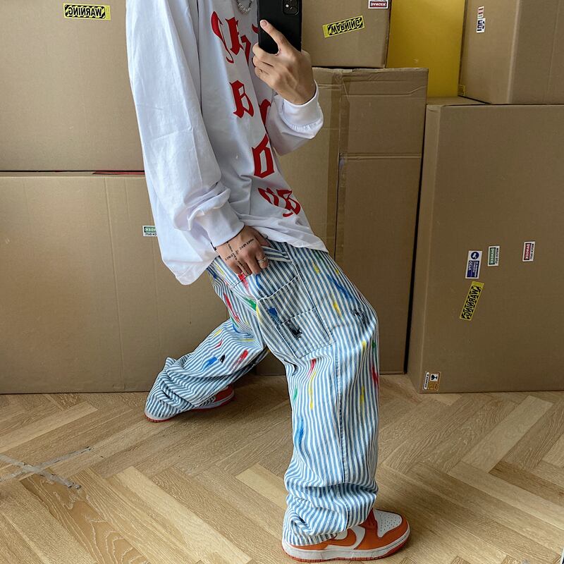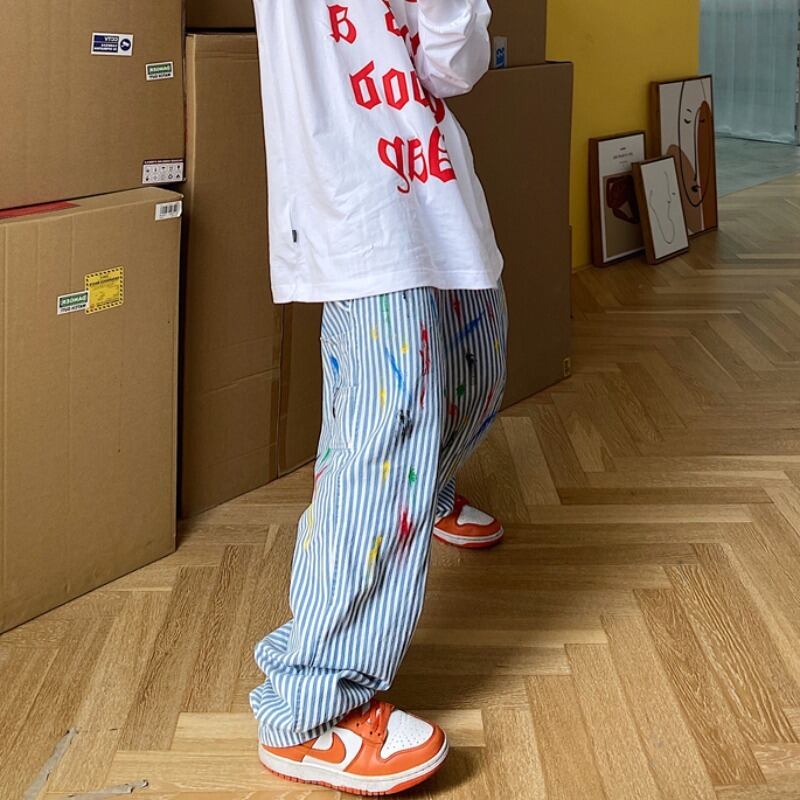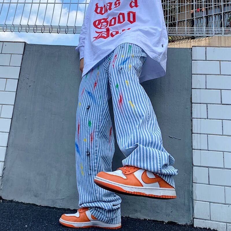 パンツレディース2020ニューバージョンインストリートストライプグラフィティストレートワイドレッグパンツルーズハイウエストジーンズトレンド Brother_is_Style58275818249