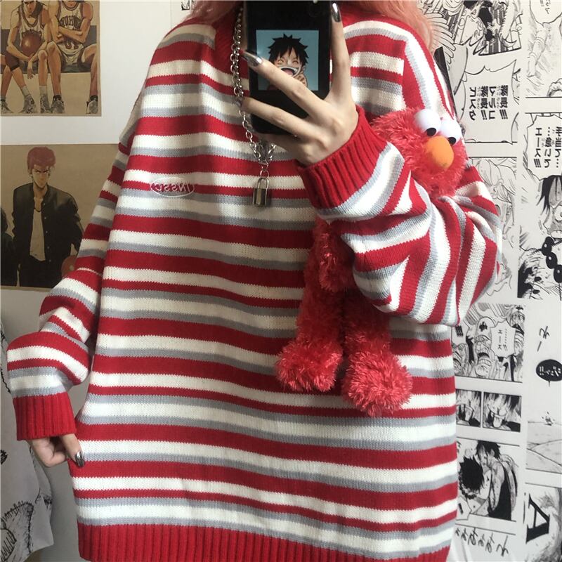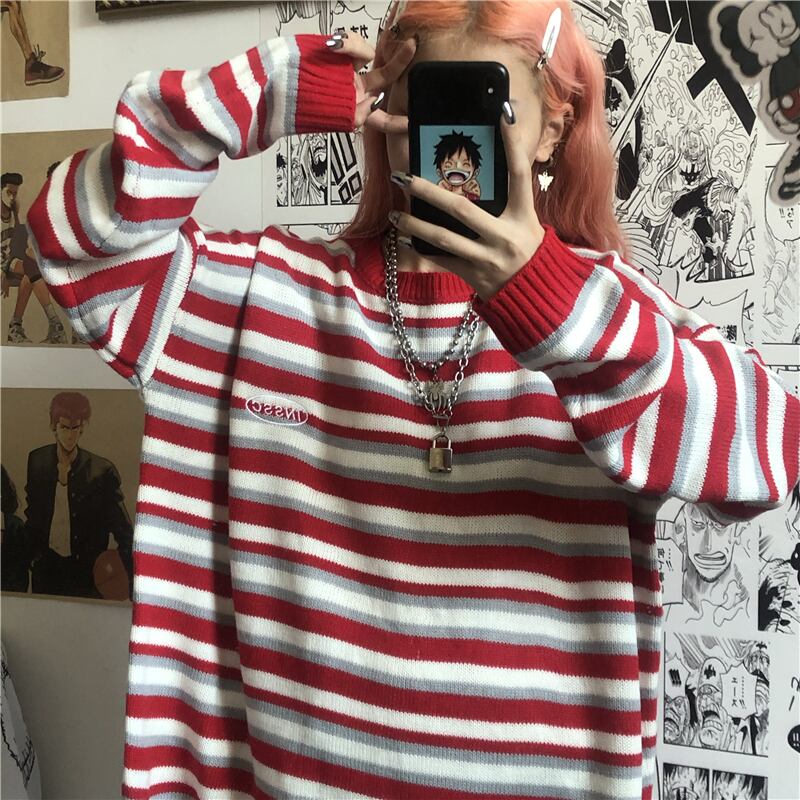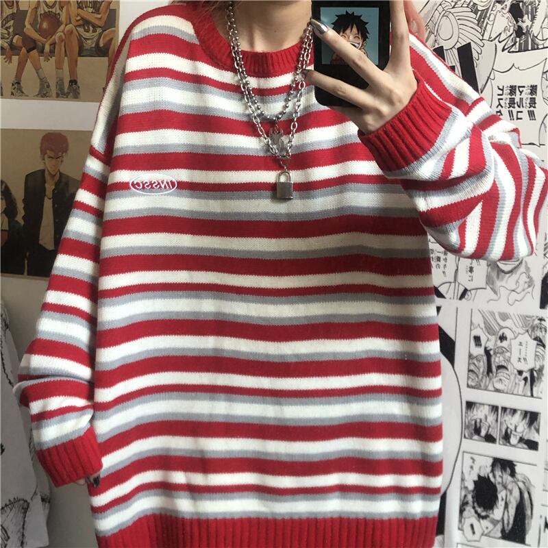 セーター女性2020年秋冬新バージョンins怠惰なストライプルーズアウターウェアプルオーバーニットトップコート Brother_is_Style49060169026