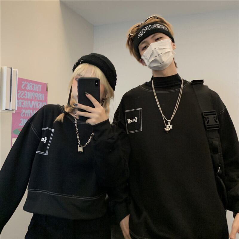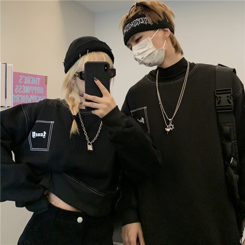 2020年秋冬新バージョンのins香港スタイルのブラックハットレスプルオーバーブラウスルーズプラスベルベットカップルセーター女性トレンド Brother_is_Style53772585270