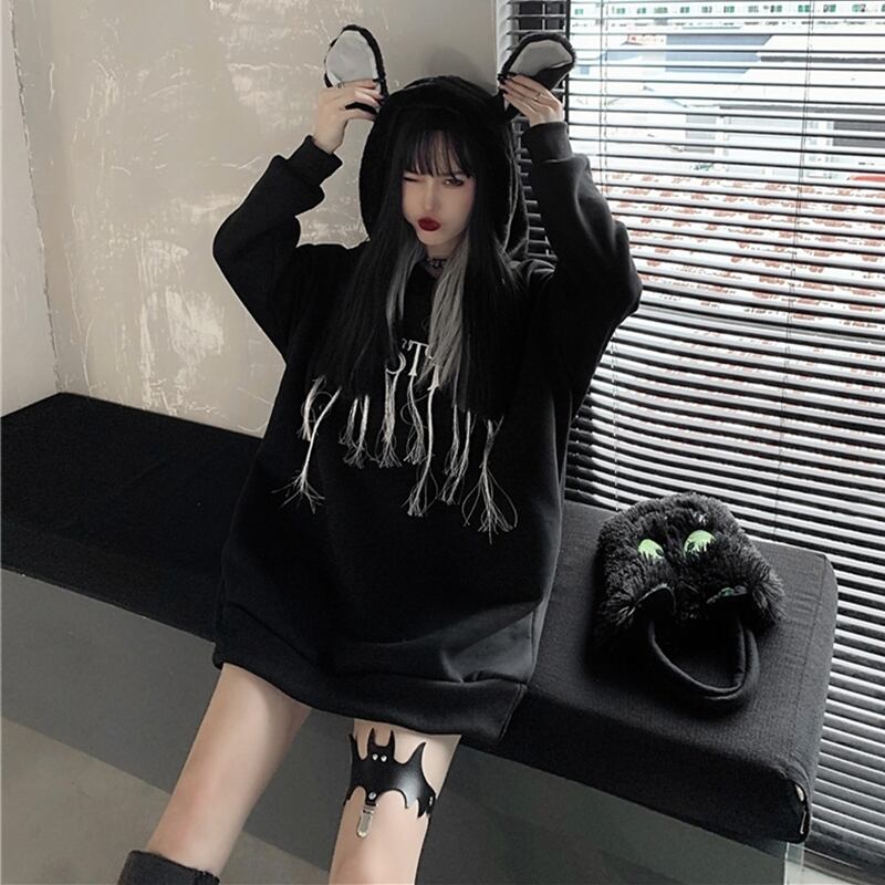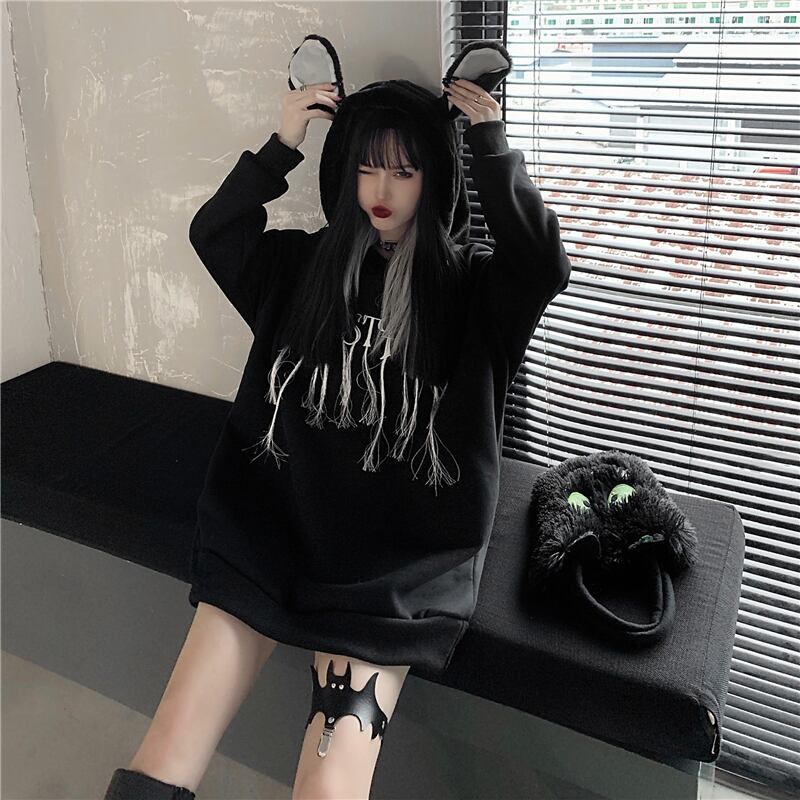 2020年の新しい秋冬バージョンのins香港スタイルの黒の長袖セータールーズプラスベルベットのフード付きジャケットジャケット女性のトレンド Brother_is_Style58633251955