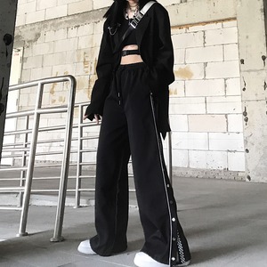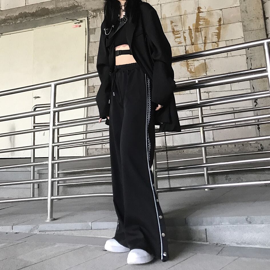 ブラックパンツ女性インデザインセンスステッチラティススプリットストレートワイドレッグパンツルーズハイウエストカジュアルパンツ Brother_is_Style82124139833
