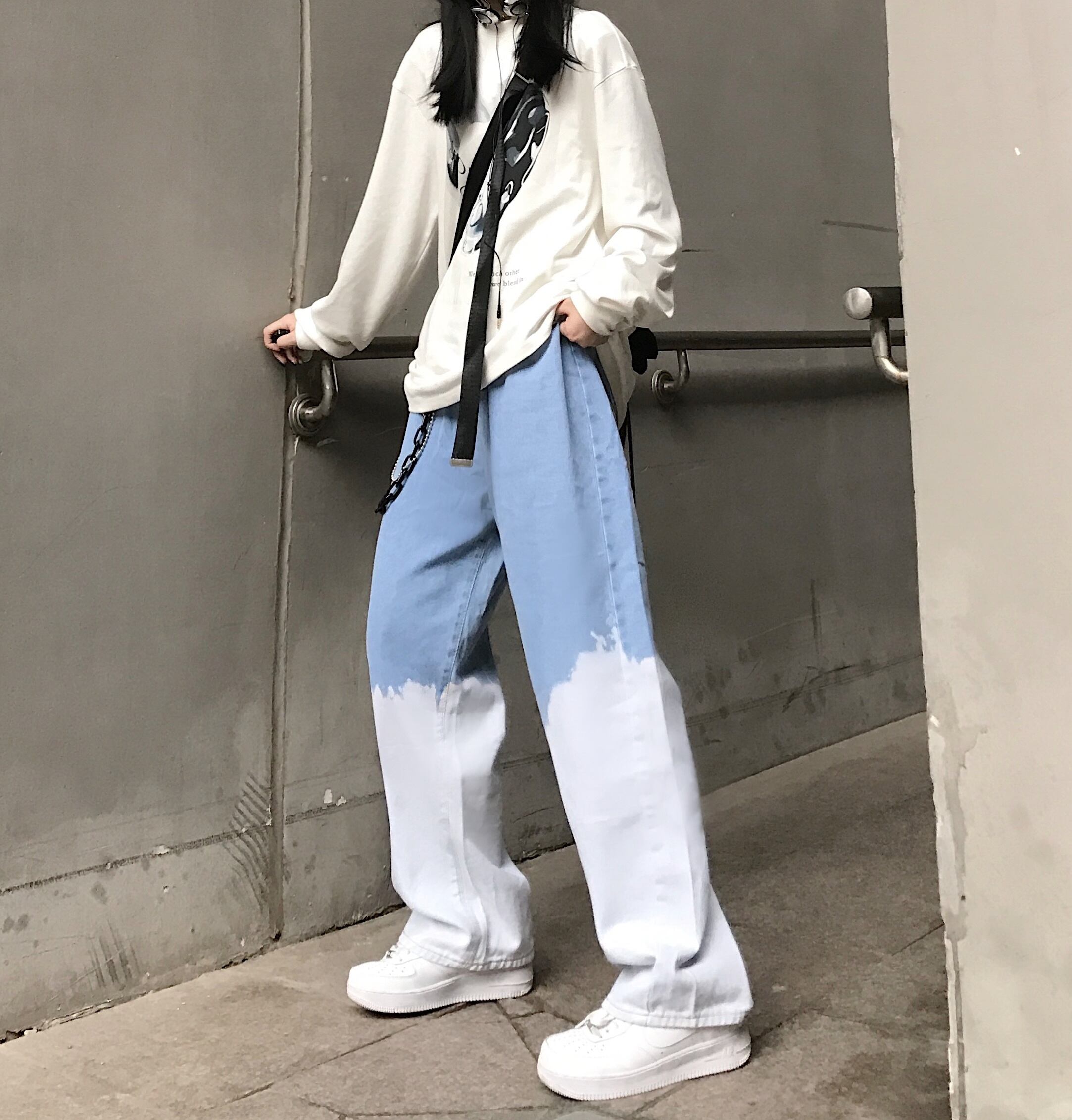 ジーンズレディース2020新バージョンのインレトロコントラストカラーシンストレートパンツルーズハイウエストワイドレッグパンツトレンド Brother_is_Style63442024922