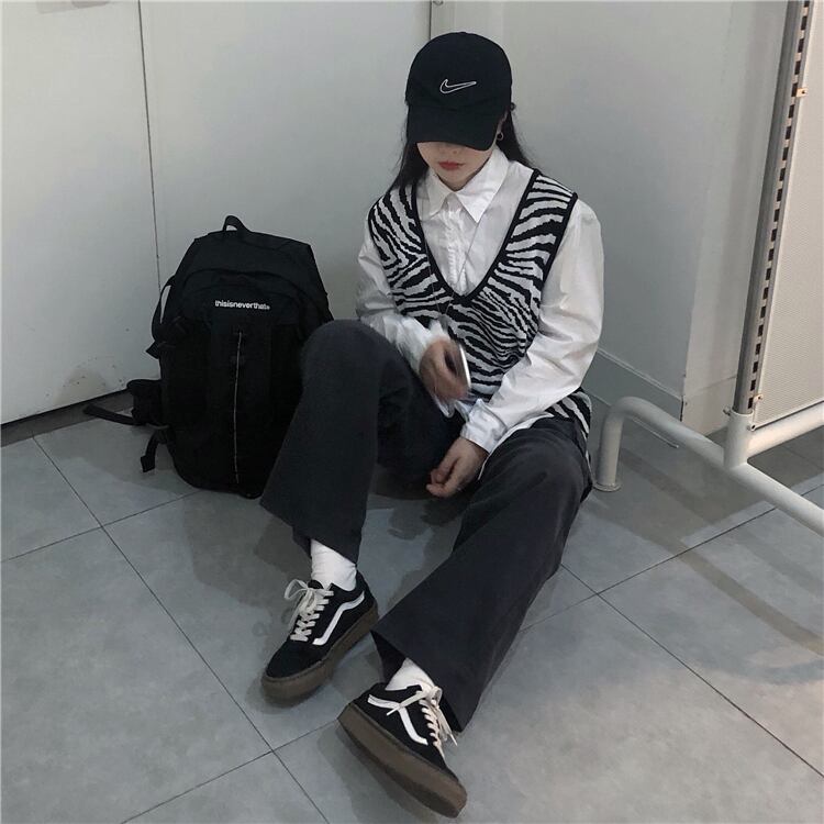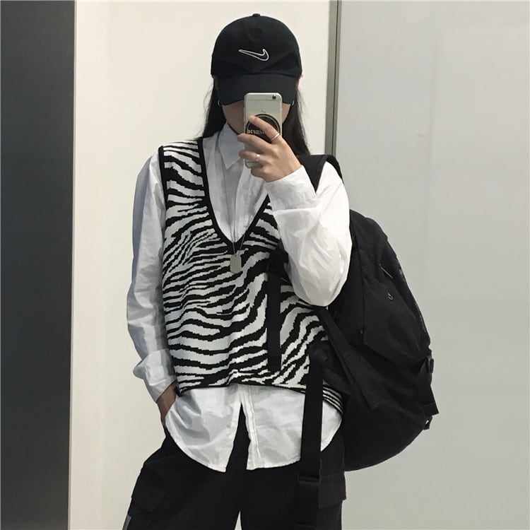 Vネックベストベストレディース2020新バージョンインレトロゼブラパターンニットセータールーズアウターウェアチョッキトレンド Brother_is_Style69743770254