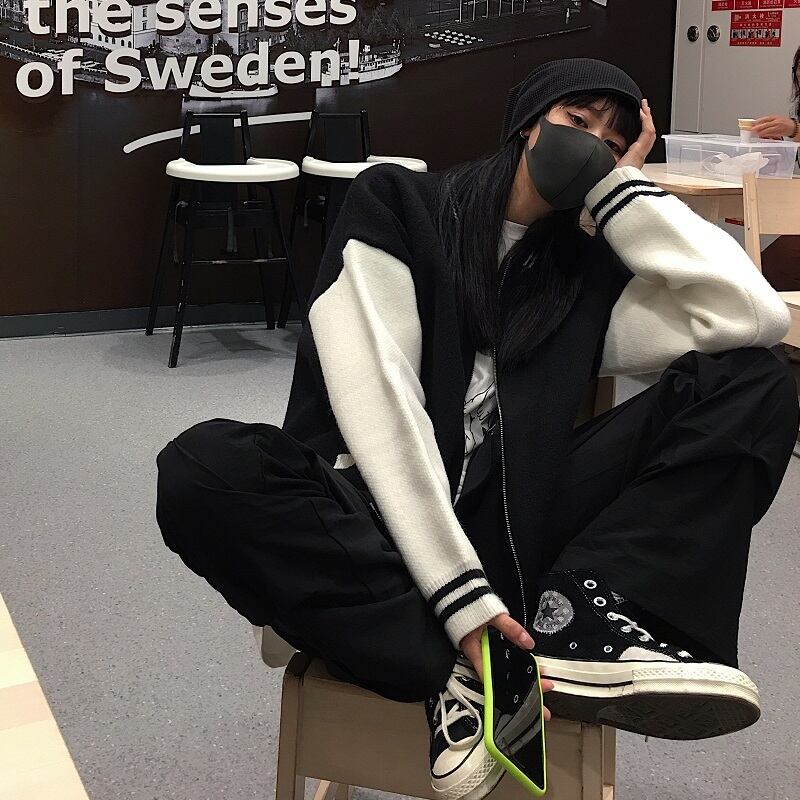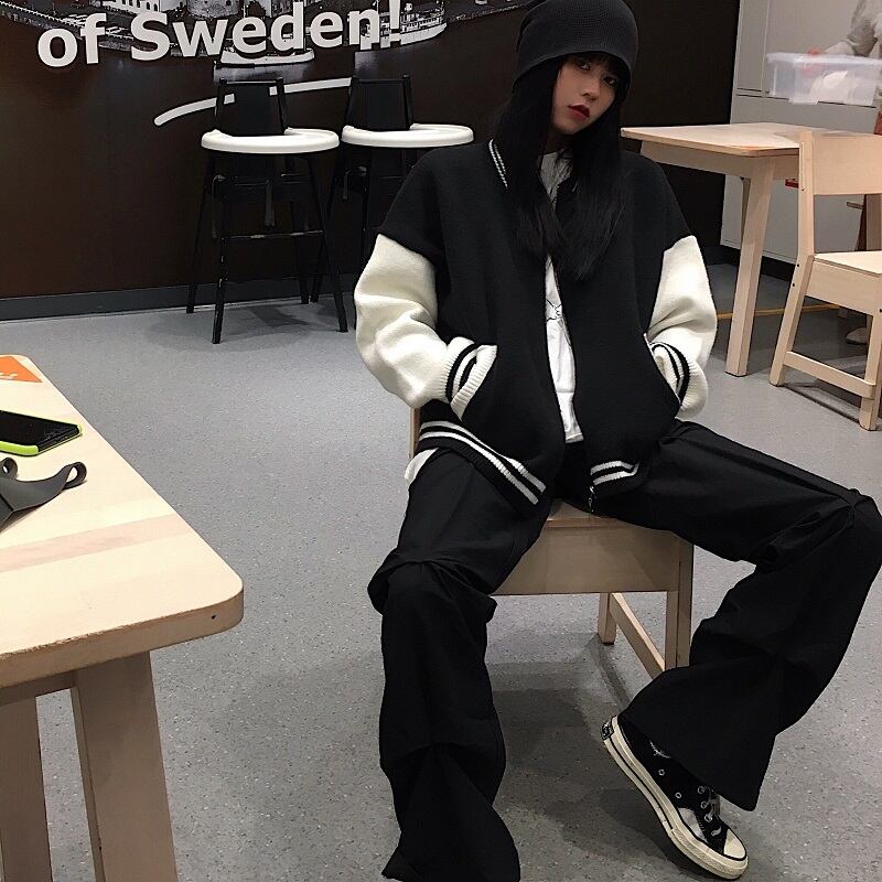 カーディガンセーターレディース2020年秋冬新バージョンインルーズカラーマッチング厚手のセーター野球ユニムジャケットトレンド Brother_is_Style69367435966