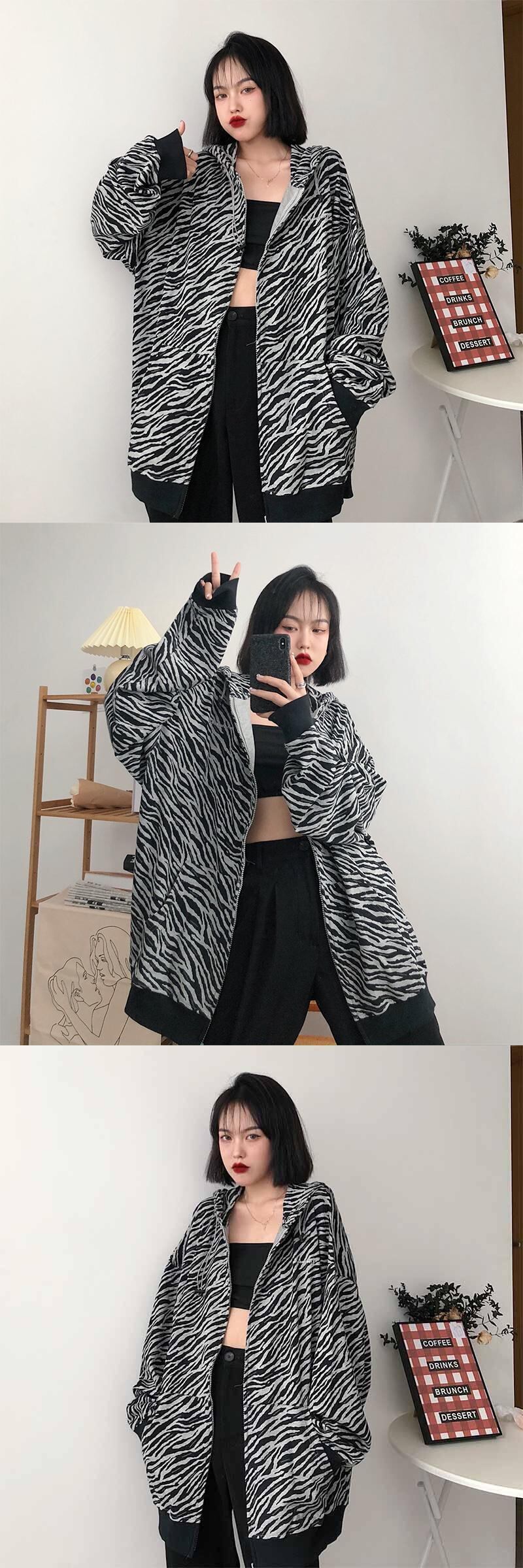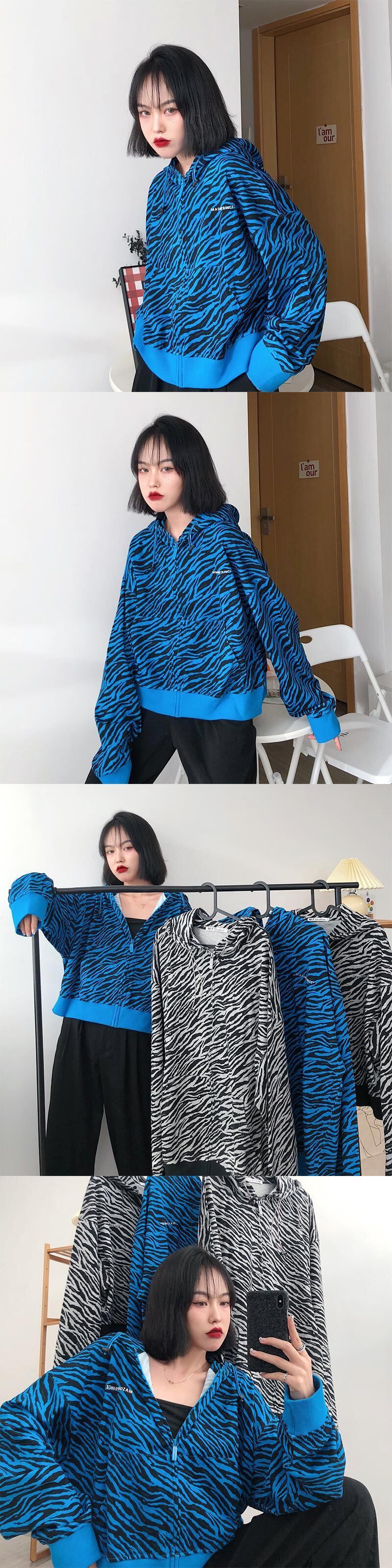 フード付きセーター女性秋の服インゼブラパターンルーズBFショートトップカーディガン長袖ジッパージャケット潮 Brother_is_Style71927052660
