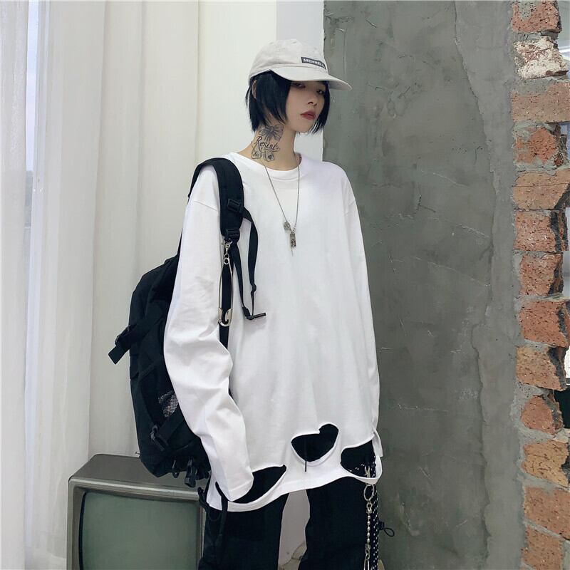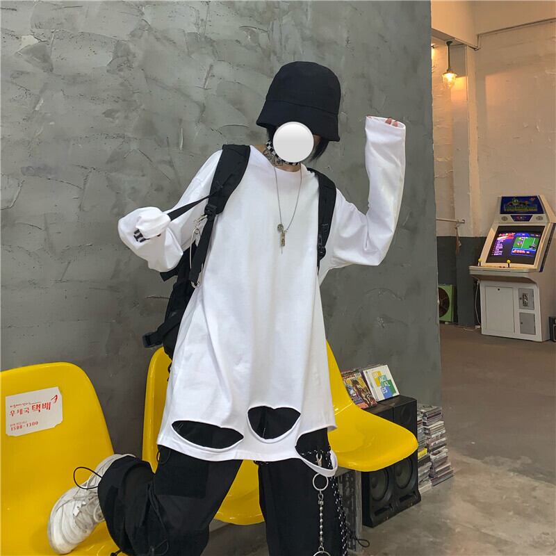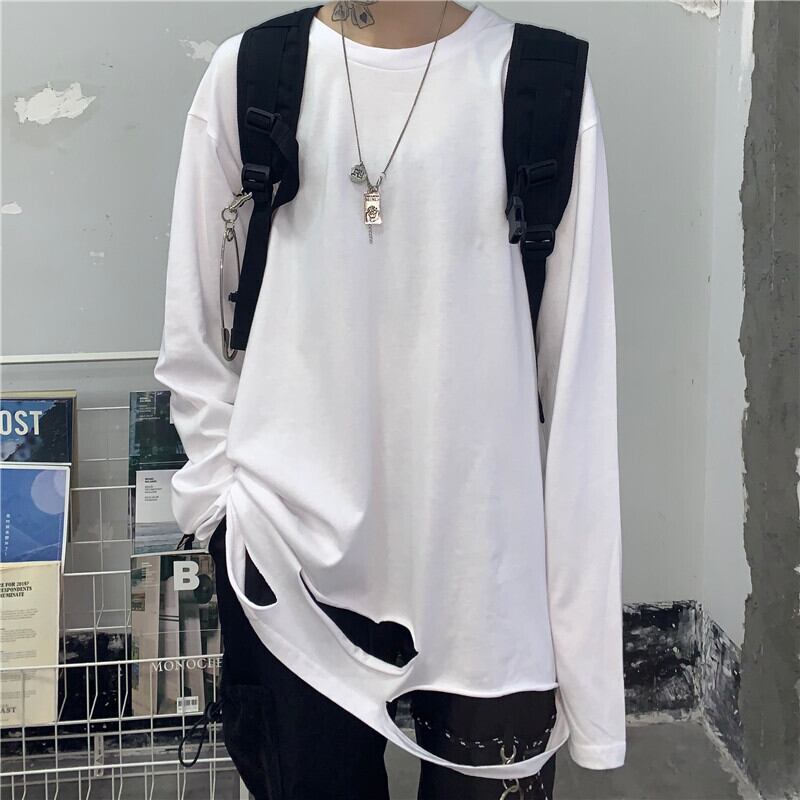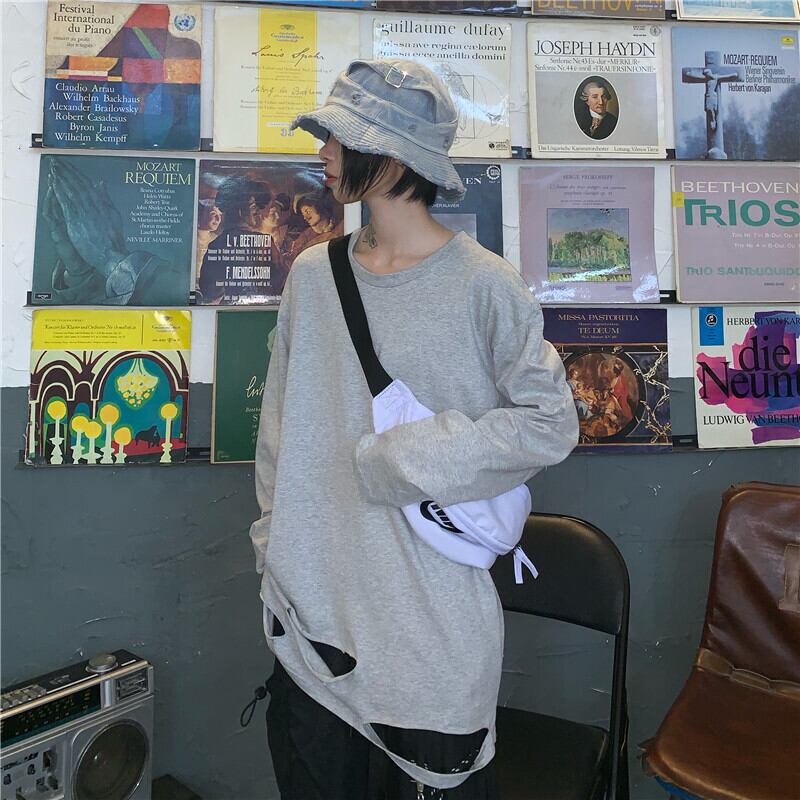 2020年秋バージョンインホワイトワイルドホール破れた長袖Tシャツルーズボトミングトップス男女 Brother_is_Style32086801691