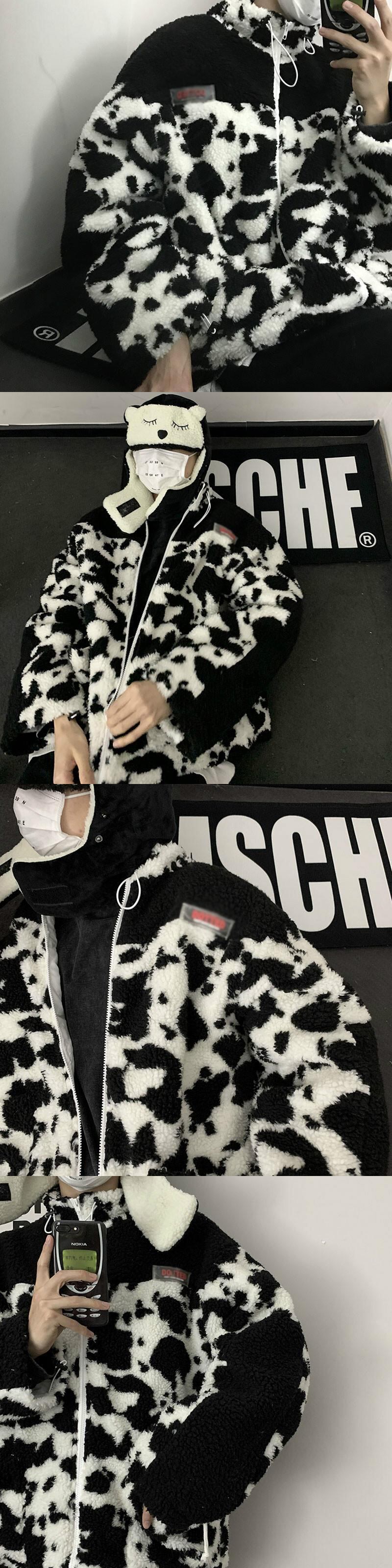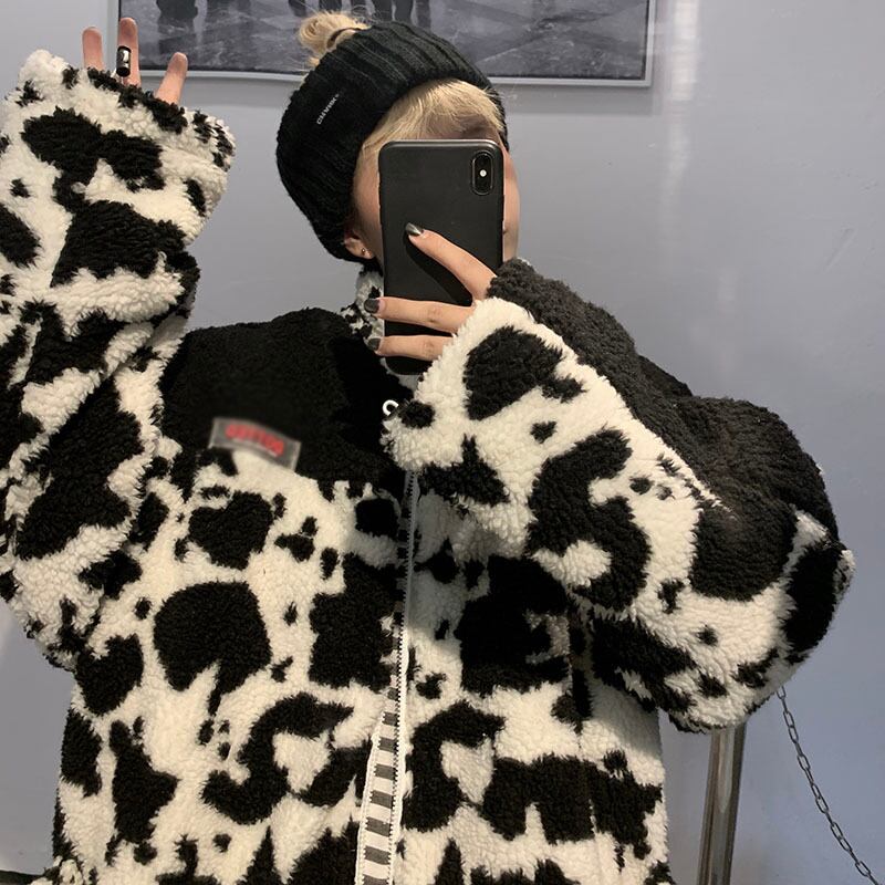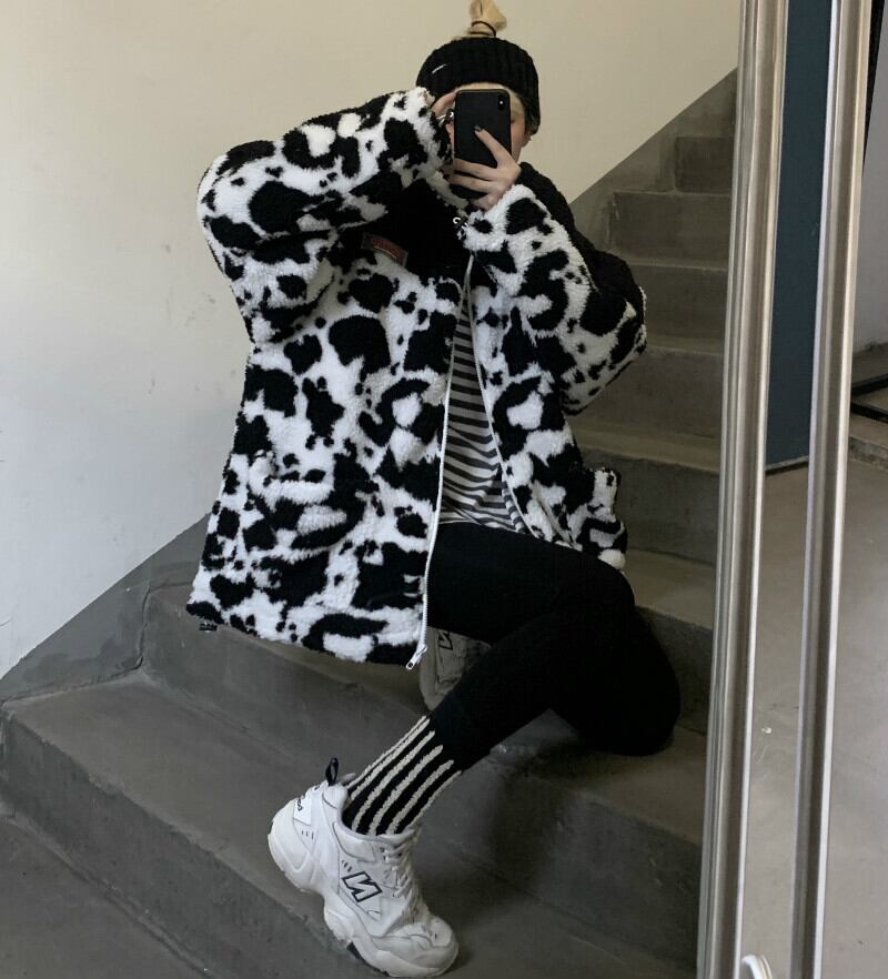 2020年の女性の新しい秋冬バージョンのins牛パターン長袖トップルーズbf厚いラムウールコートトレンド Brother_is_Style43648346489