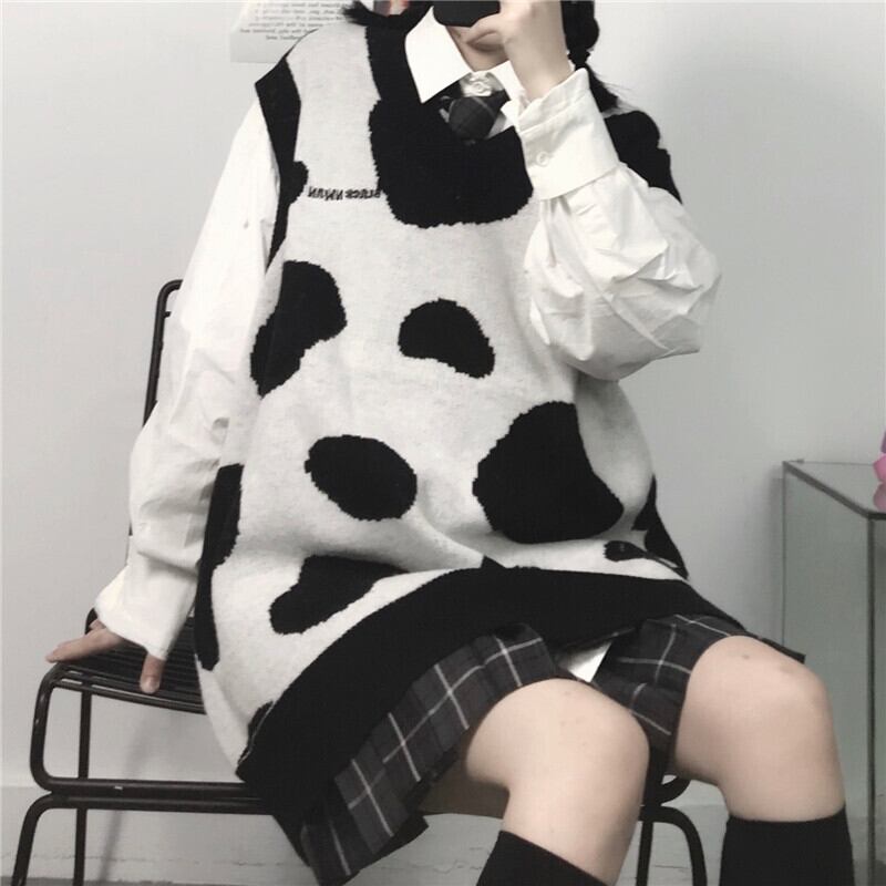ベストレディース2020新バージョンinsレトロカウVネックニットセーターベストルーズアウターウェアノースリーブベスト Brother_is_Style6938972650