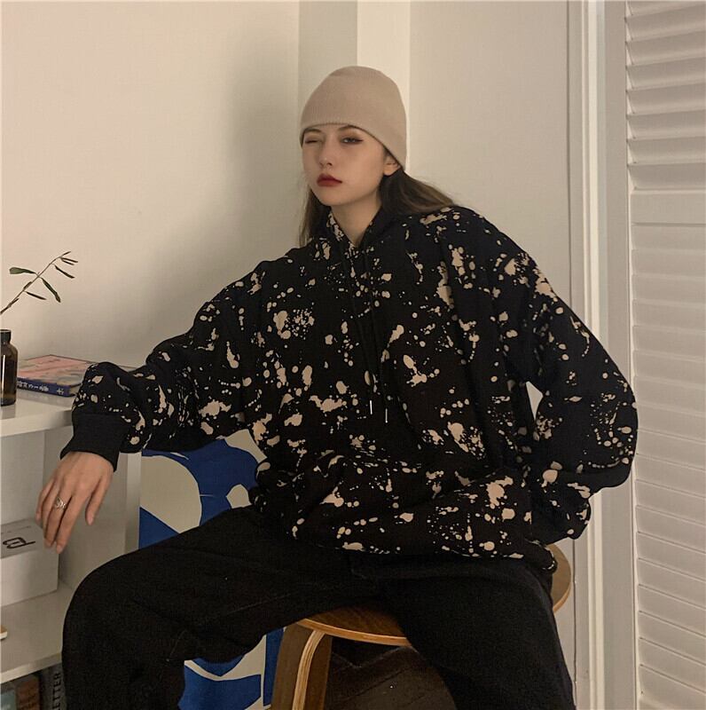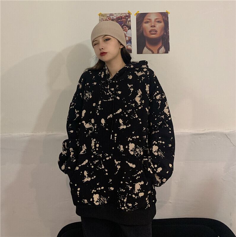 ジャケットレディース2020年秋冬新バージョン原宿風絞り染めスプラッシュインクルーズBFフード付きプラスベルベットセータートレンド Brother_is_Style51154001001
