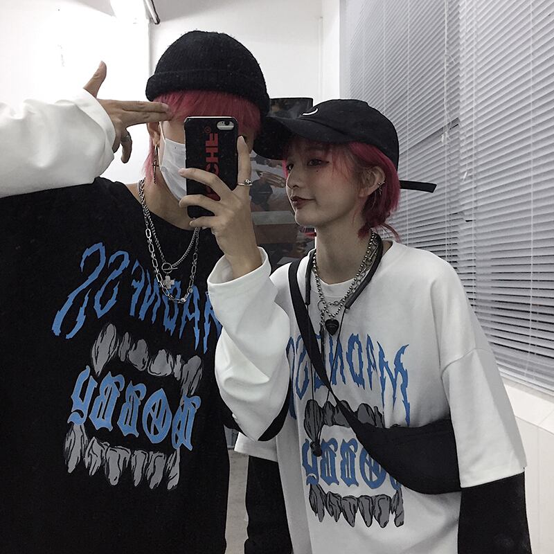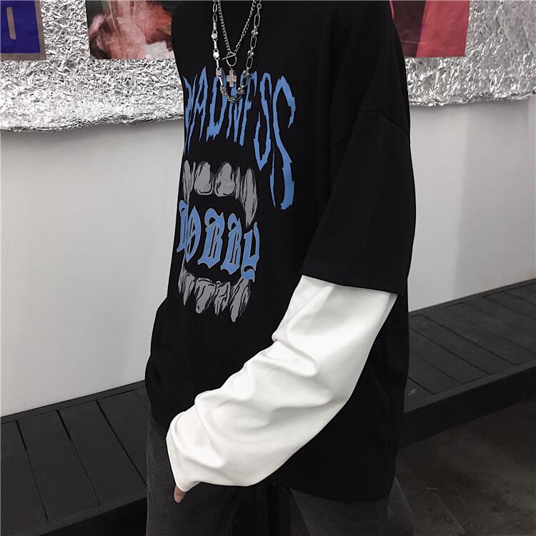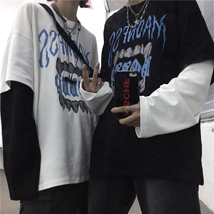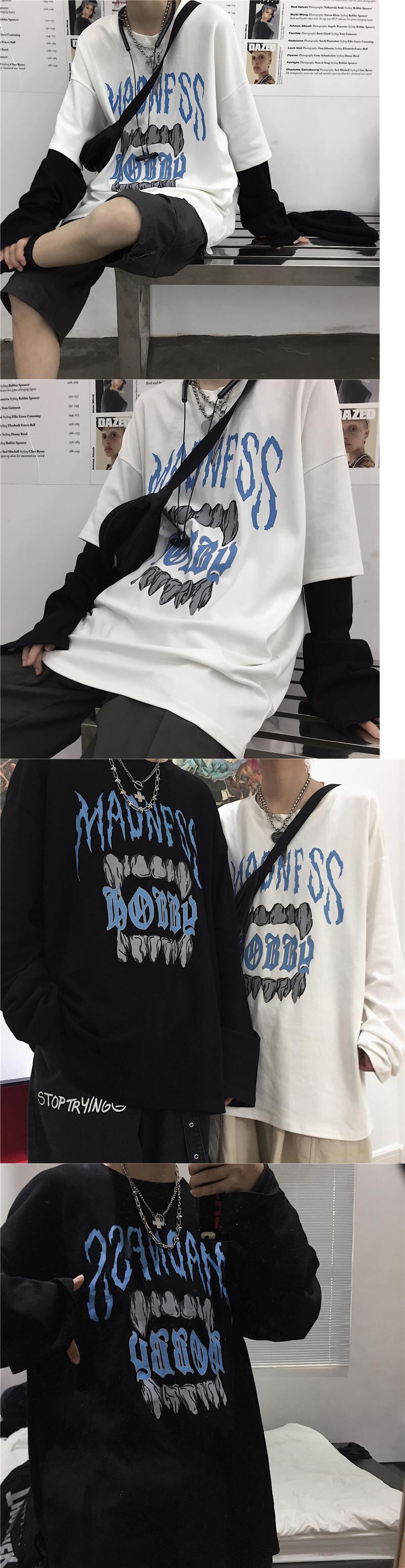 2020年秋新バージョンのイン風レトロダークプリントフェイクツーピーストップルーズ長袖Tシャツ女性トレンド Brother_is_Style5347758733