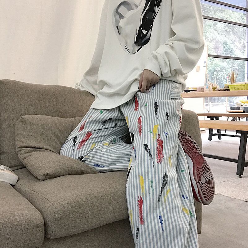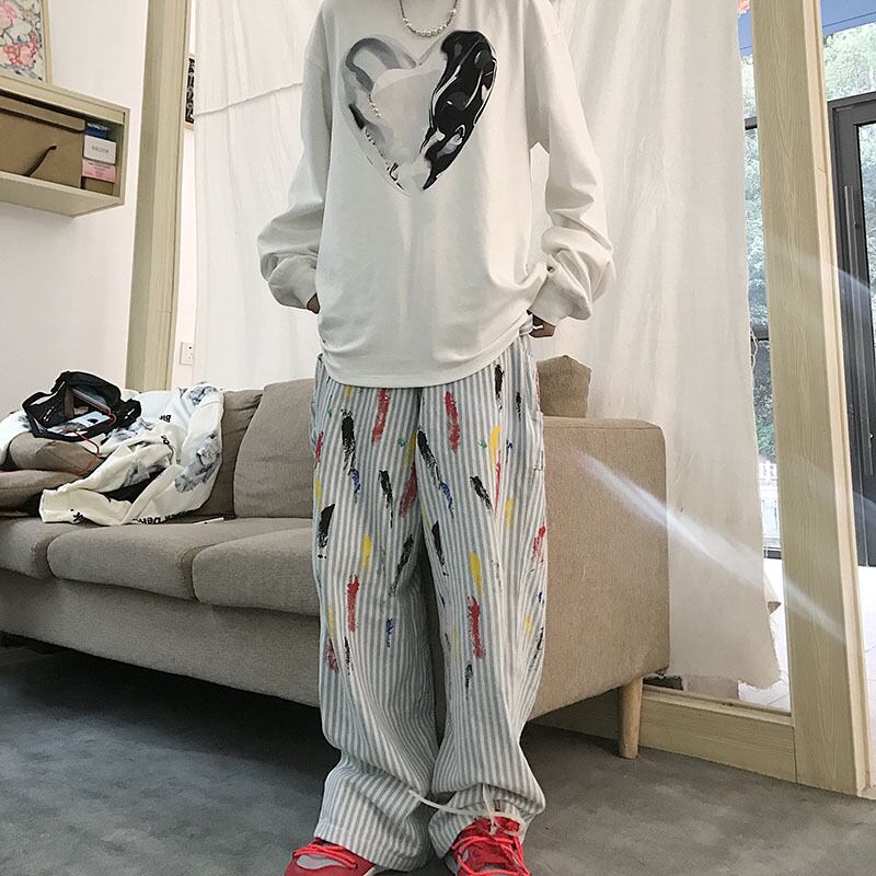 パンツレディース2020新バージョンinsストリートグラフィティストライプモップパンツルーズハイウエストストレートカジュアルパンツ Brother_is_Style58562708272