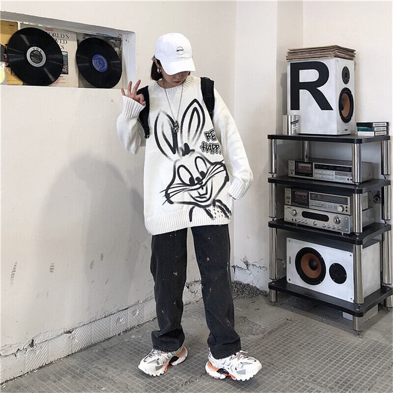 プルオーバーブラックセーター女性2020年秋冬新バージョンinsルーズ漫画うさぎラウンドネックニットジャケットトレンド Brother_is_Style73149047722