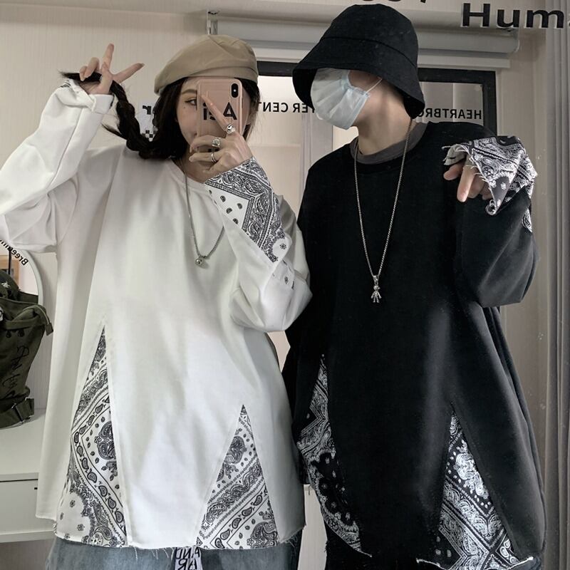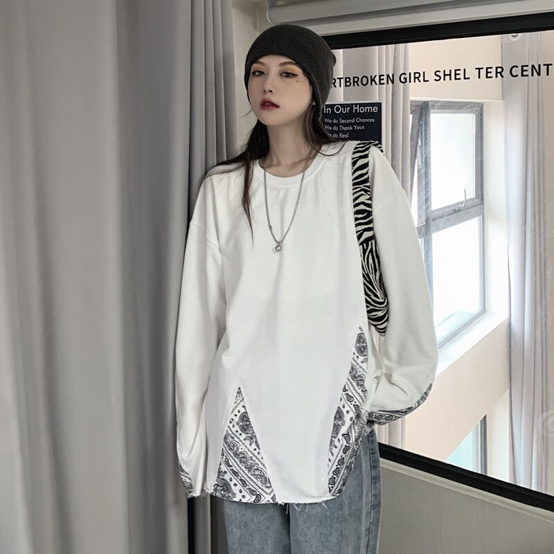 2020年の新しい秋の服バージョンは、不規則なスプライシングの偽のツーピーストップスの女性が長袖のTシャツ愛好家の潮を緩めます Brother_is_Style69034439096
