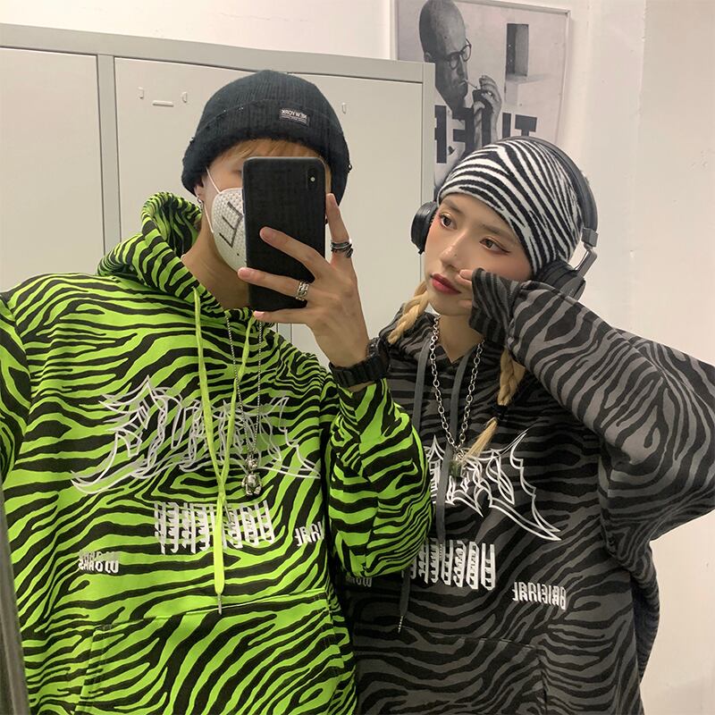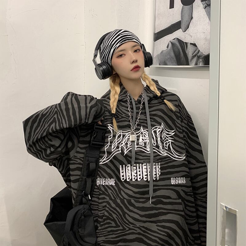 ジャケットレディース秋の服2020新バージョン原宿BF風揚げストリートゼブラ柄ルーズフード付きセータートレンド Brother_is_Style51002012133
