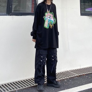 パンツ女性バージョン原宿スタイルワイルド巾着ワークウェアカジュアルパンツルーズハイウエストストレートワイドレッグパンツトレンド Brother_is_Style88010274743