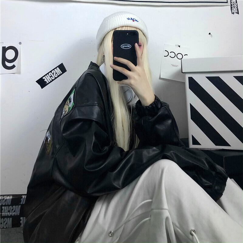 2020年秋新しい女性バージョンins揚げストリートレザーオートバイジャケットルーズブラックレザージャケットトップトレンド Brother_is_Style20088652384