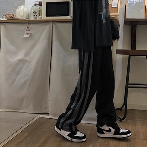 パンツレディース2020新秋バージョンins香港スタイルワイルドサイドストライプストレートワイドレッグスポーツカジュアルパンツ Brother_is_Style17814553633