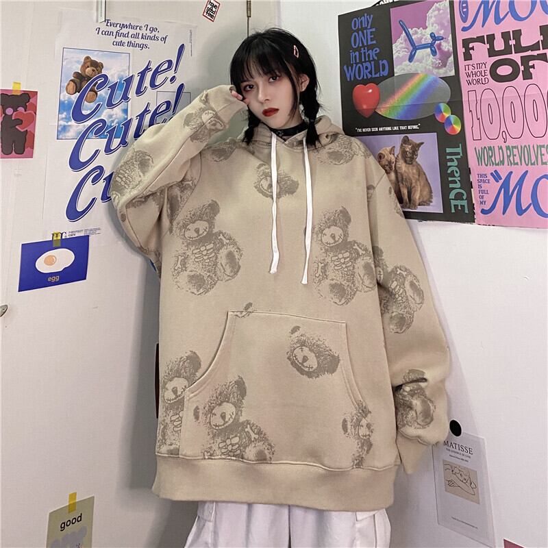 2020年秋冬新バージョンins漫画クマセーターコートルーズプラスベルベットフード付き長袖トップス Brother_is_Style10545990723