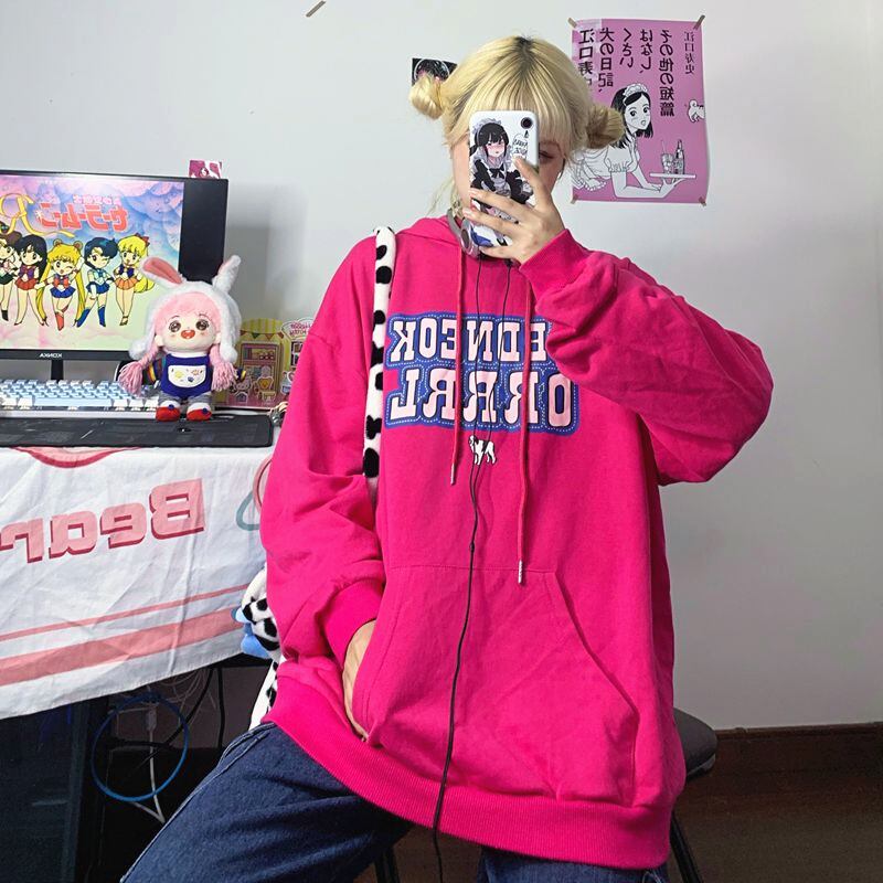 2020年の新しい秋冬バージョンのインローズレッドレターフード付きトップルーズプラスベルベットセータージャケット女性トレンド Brother_is_Style12903978163