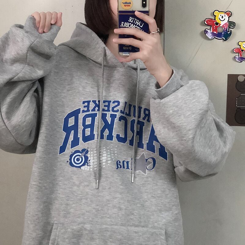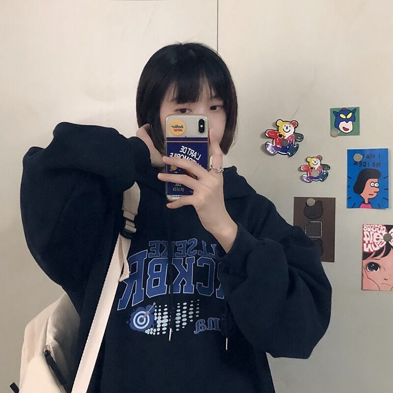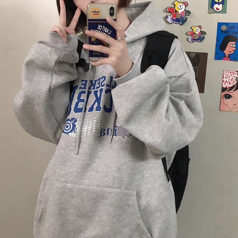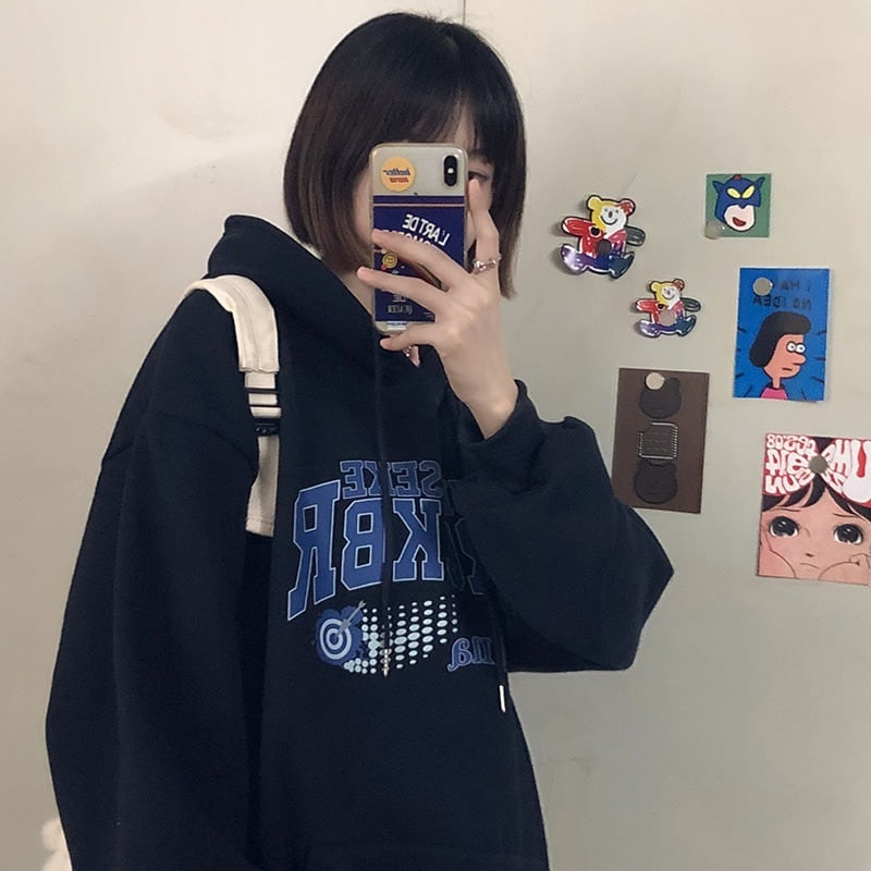 2020年の新しい秋冬バージョンのins香港スタイルのレターフード付きトップ女性ルーズプラスベルベットセータージャケット学生トレンド Brother_is_Style35090851638