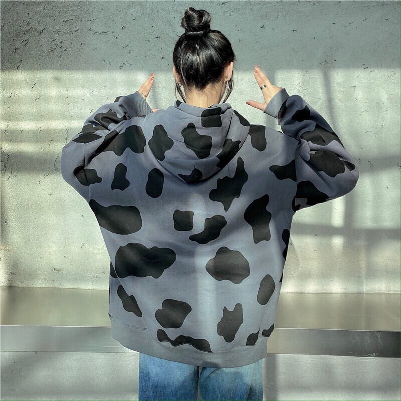 2020年の新しい秋冬バージョンのインレイジーカウパターンとフリースジャケットコートルーズフード付きセーター女性トレンド Brother_is_Style91267498535