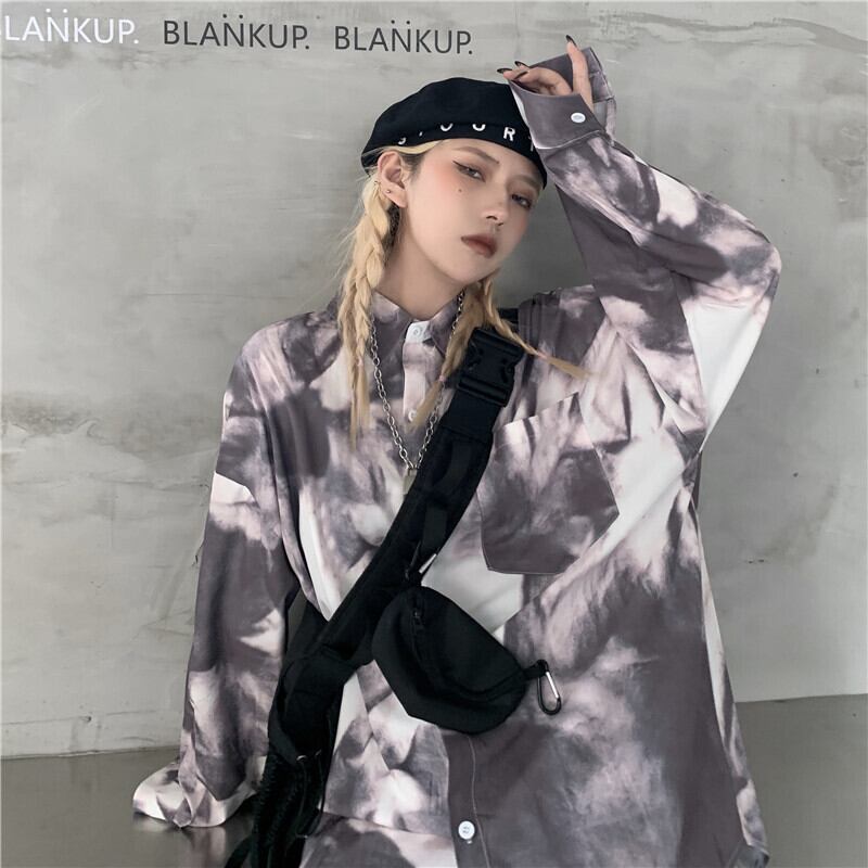 アウターシャツレディース2020秋新バージョン原宿ポートスタイルルーズ絞り染め長袖スクエアカラートップ Brother_is_Style44698703579