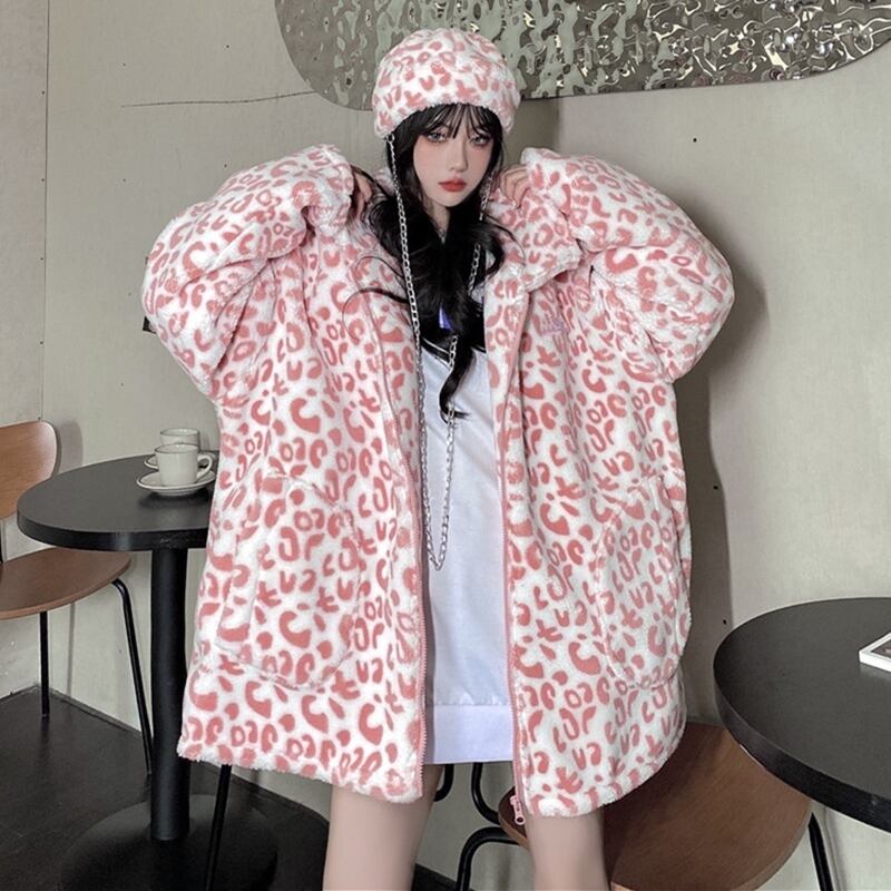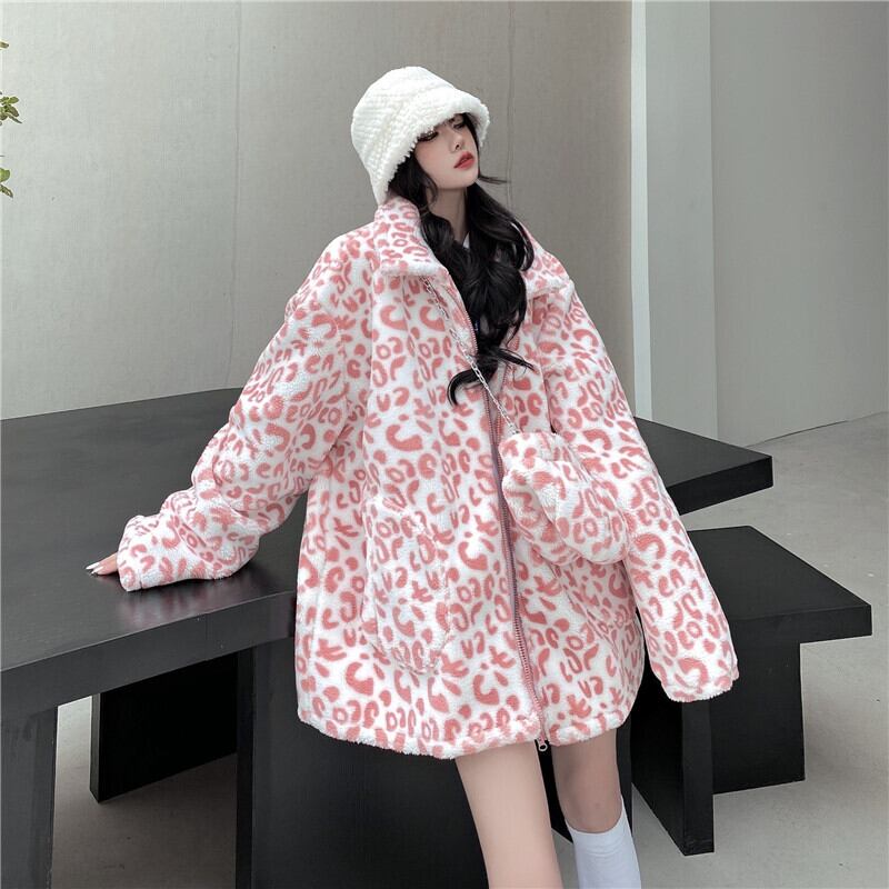 2020年の女性の新しい冬バージョンはピンクのヒョウの子羊のウールのコートコート緩い厚い綿のコートの潮 Brother_is_Style27738782447