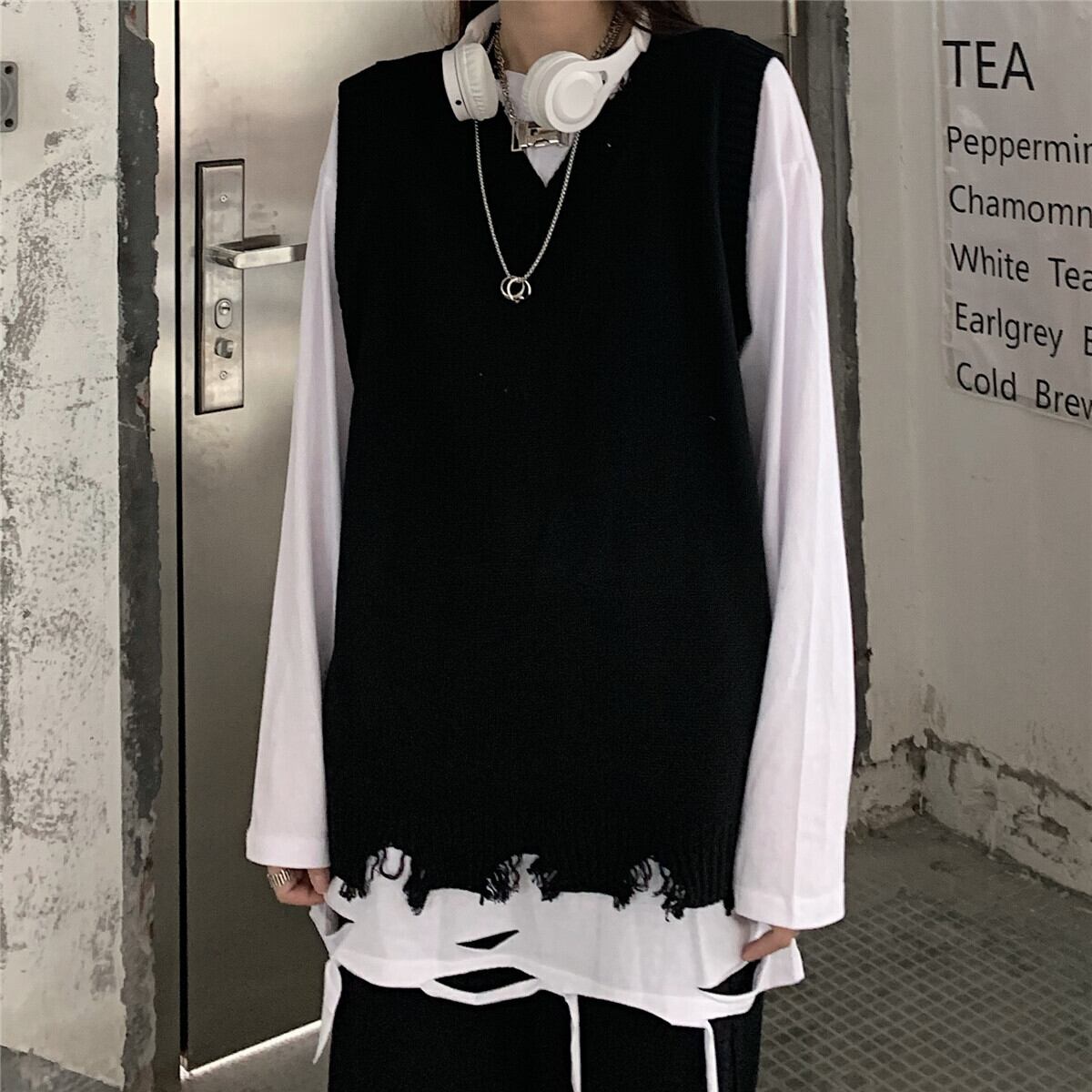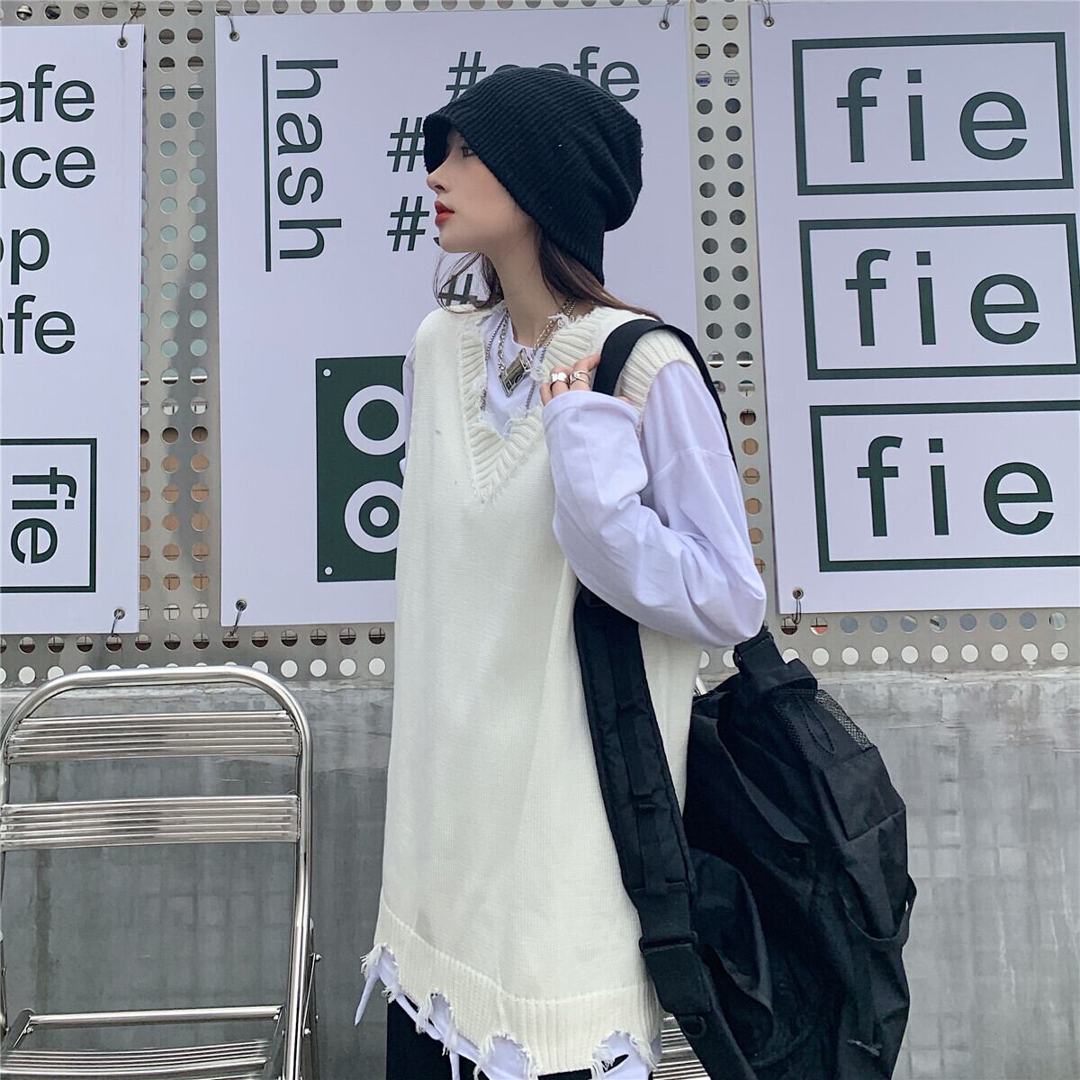 2020年秋新バージョンのインフライストリートホールニットセーターチョッキベストルーズVネックセーター女性トレンド Brother_is_Style98439618597
