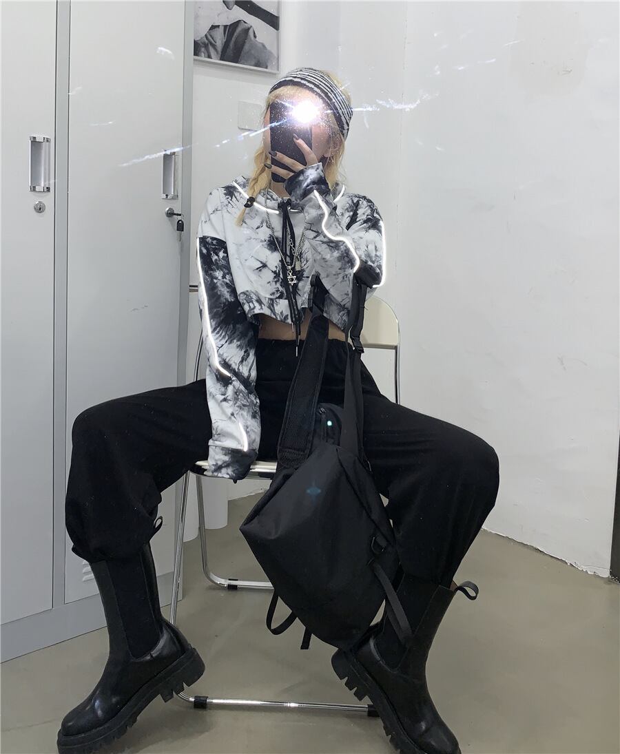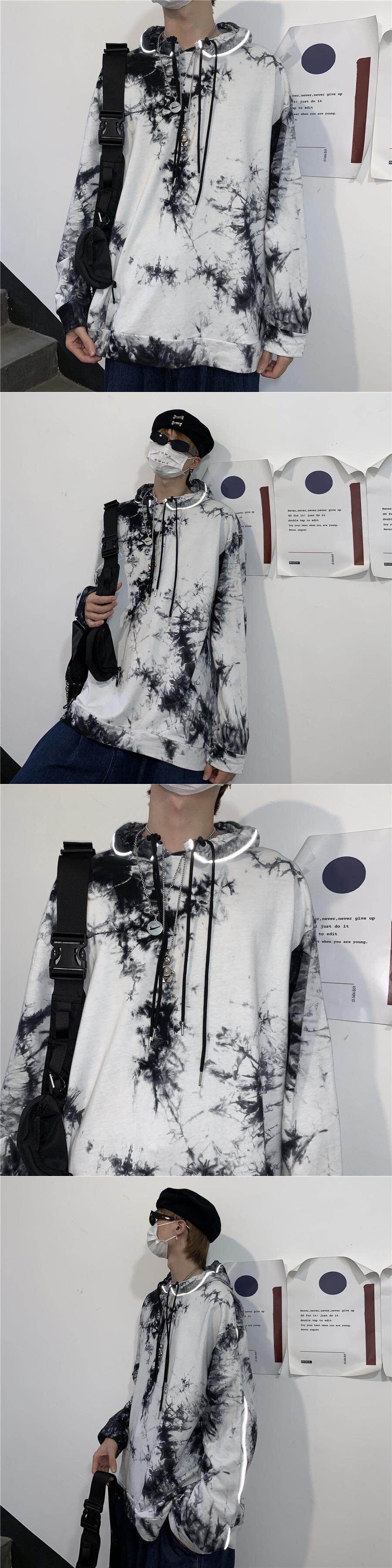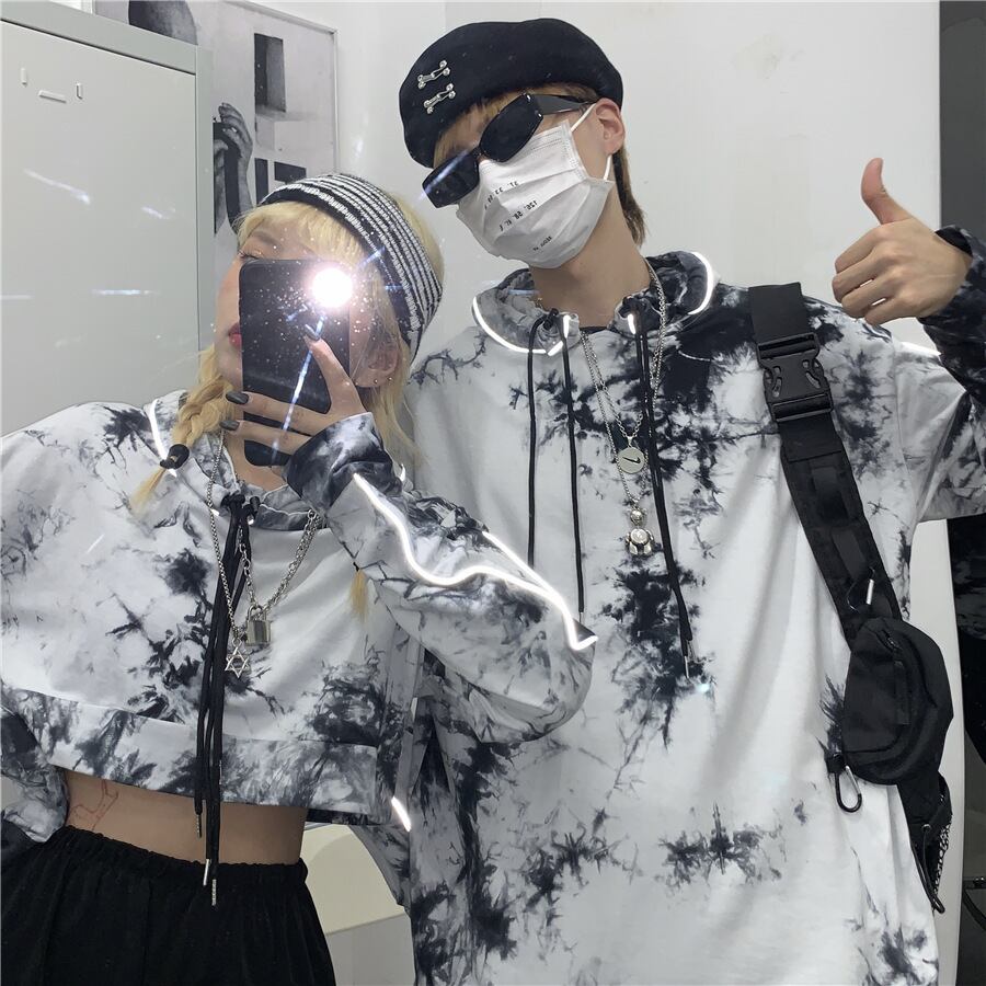 ショートトップの女性の2020年秋新バージョンは絞り染めの反射カップルルーズフード付きセーターコートのトレンド Brother_is_Style36797045777