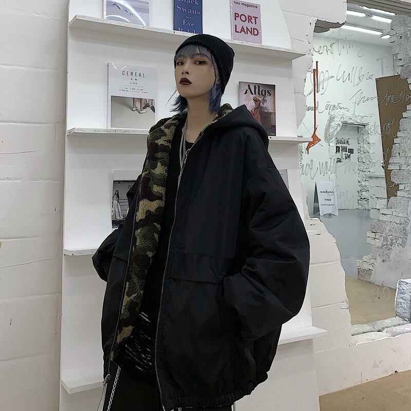 両面ジャケット女性2020年冬新バージョンインルーズカモフラージュラムウール厚手のフード付きコットンパッド入りジャケットタイド Brother_is_Style2106778571