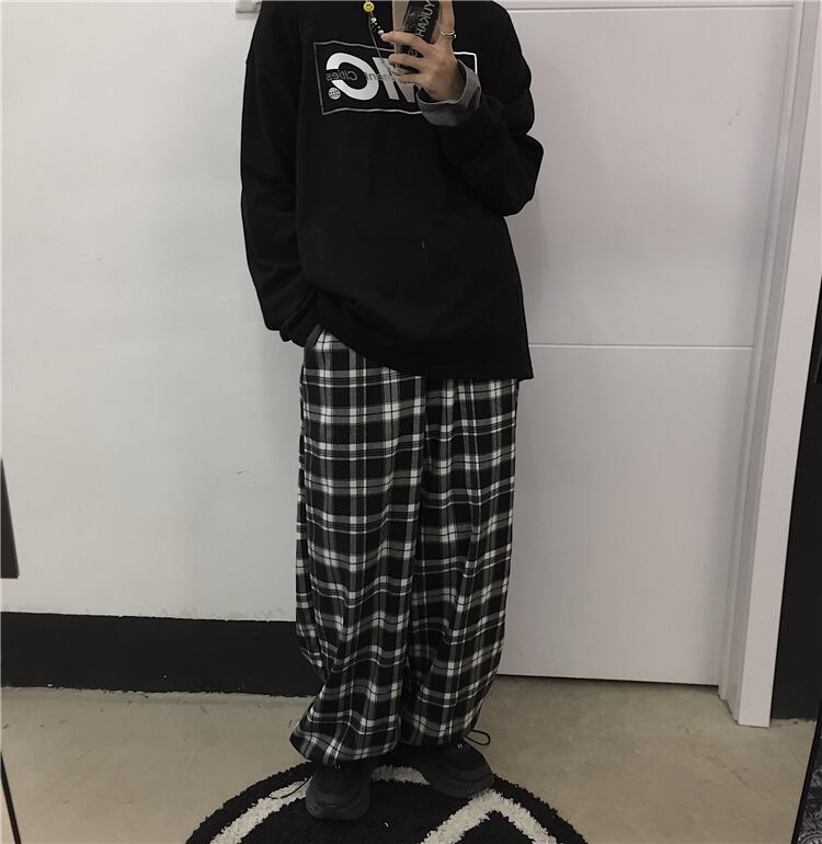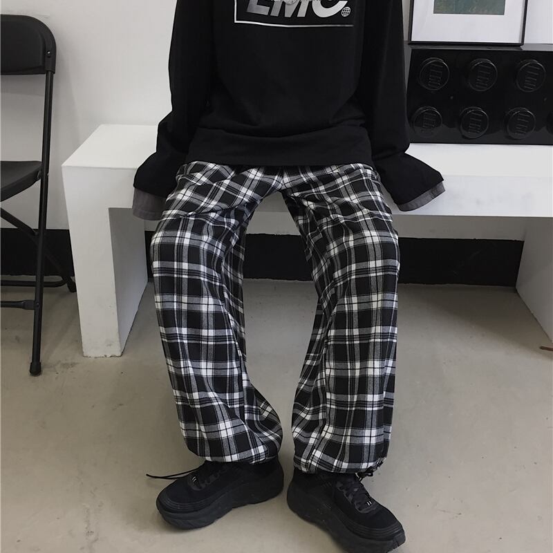 パンツレディース2020新バージョンのinsラティスビームパンツハイウエストワイドレッグパンツルーズストレートカジュアルパンツトレンド Brother_is_Style34356563402