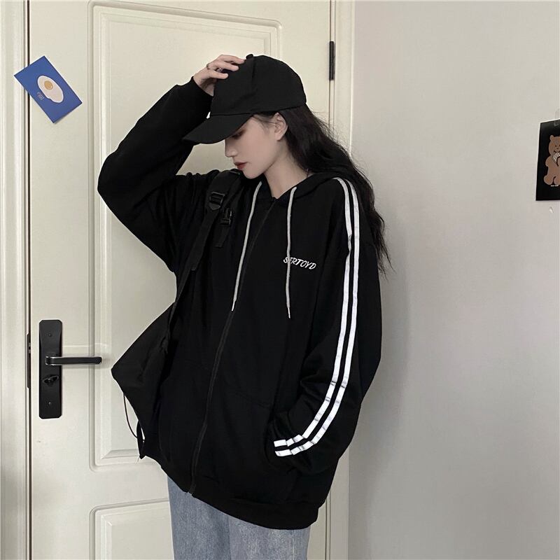 フリースセーターレディース2020年秋冬新バージョンインステッチ反射ストリップブラックルーズフード付きカーディガンジャケット Brother_is_Style39550961228
