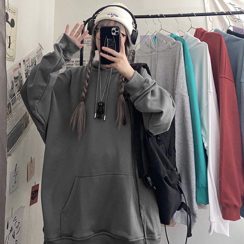 フード付きセーター女性2020年秋冬新バージョンins香港スタイル無地ルーズプラスベルベット厚手のトップコート Brother_is_Style75996715634