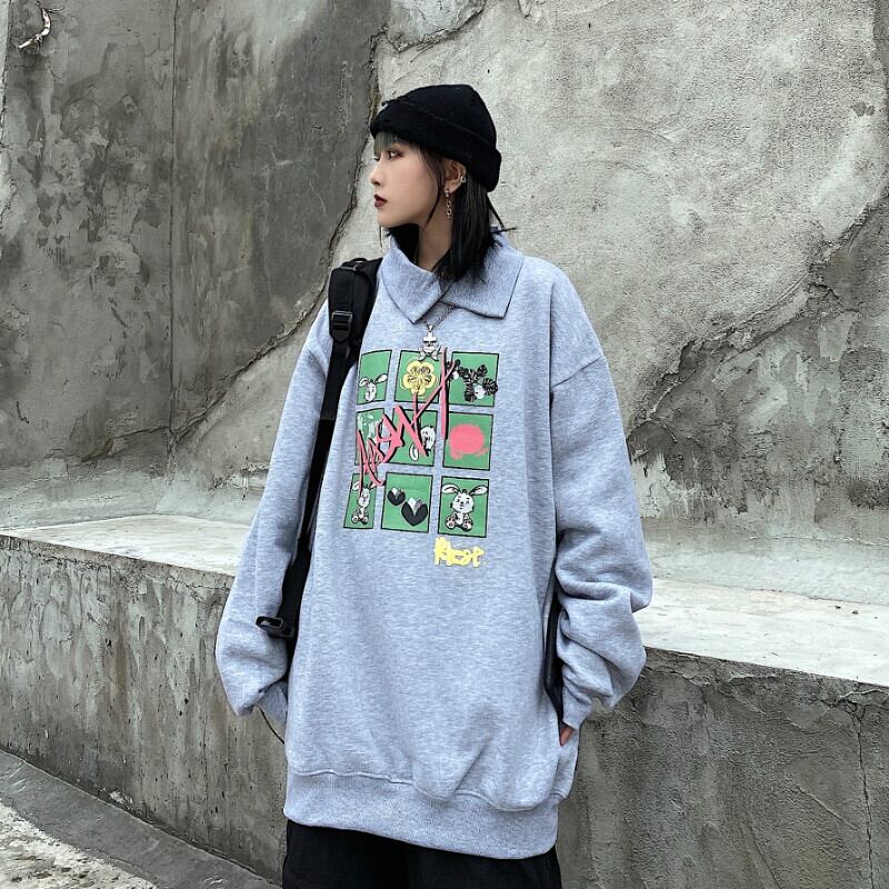 2020年の新しい秋と冬の女性バージョンのインレトロな学生の長袖シャツルーズプラスベルベットのフードレスセーターコートのトレンド Brother_is_Style23016615645