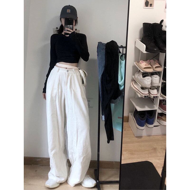 パンツレディース2020ニューバージョンインホワイトコーデュロイストレートワイドレッグパンツルーズハイウエストカジュアルパンツトレンド Brother_is_Style43981371423