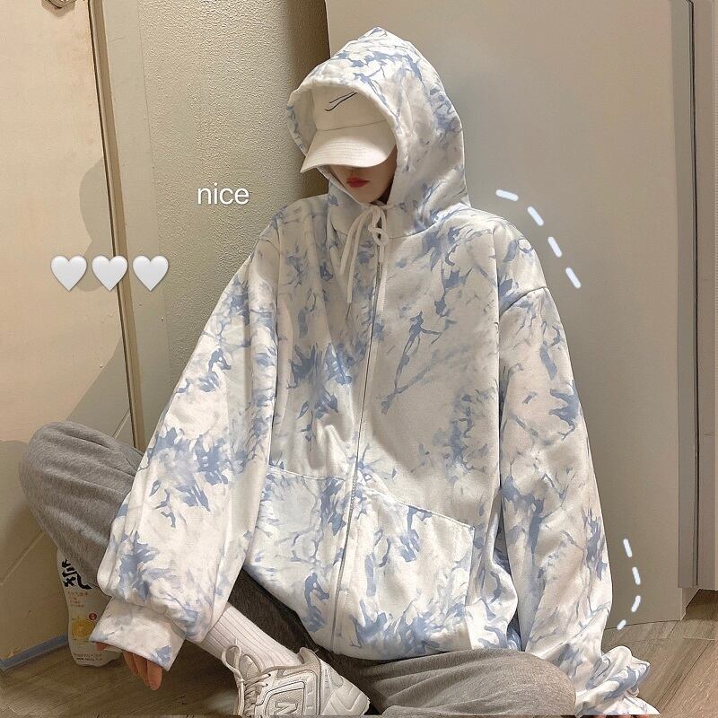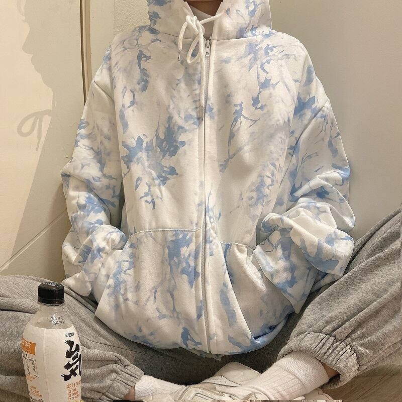 2020年秋冬の新しいスタイルのインフライドストリート絞り染めとフリースフード付きセータールーズワイルドカーディガンジャケット女性トレンド Brother_is_Style33153397215