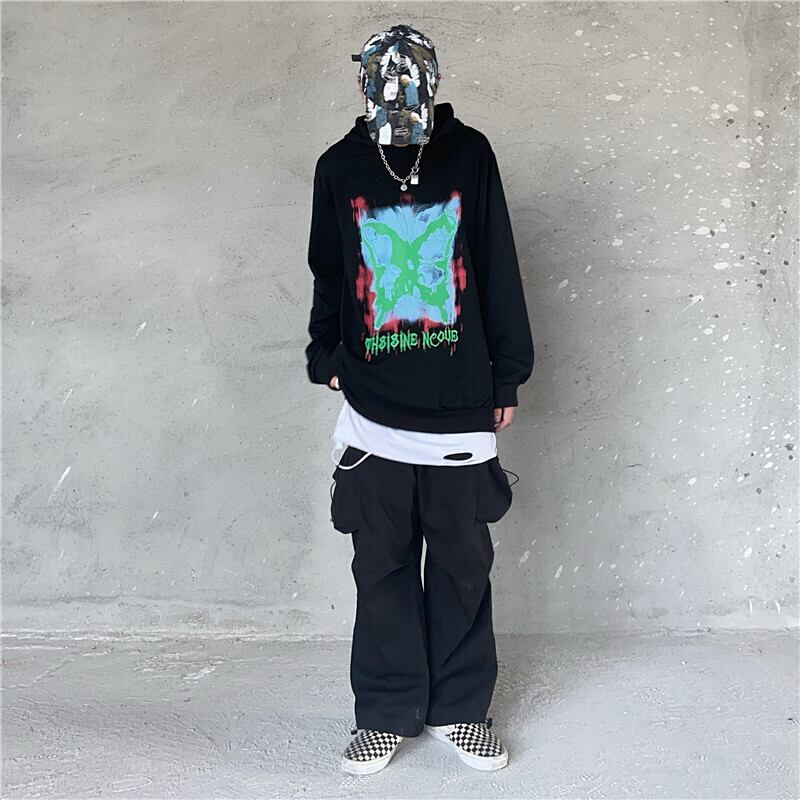 2020年秋新バージョンinsレトログラフィティバタフライフード付きセータールーズカップルトップコート女性トレンド Brother_is_Style70562438911