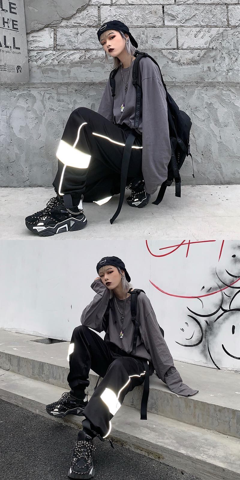 パンツ女性2020新バージョンinsポートスタイルステッチ反射ビームパンツブラックルーズスリムカジュアルパンツトレンド Brother_is_Style26465705304