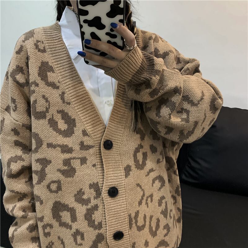 2020年新秋バージョンinsレトロヒョウニットトップルーズカップルカーディガンセータージャケット女性トレンド Brother_is_Style6374128174