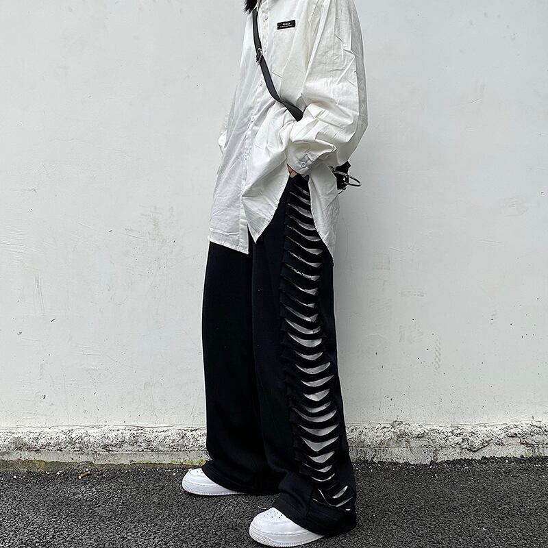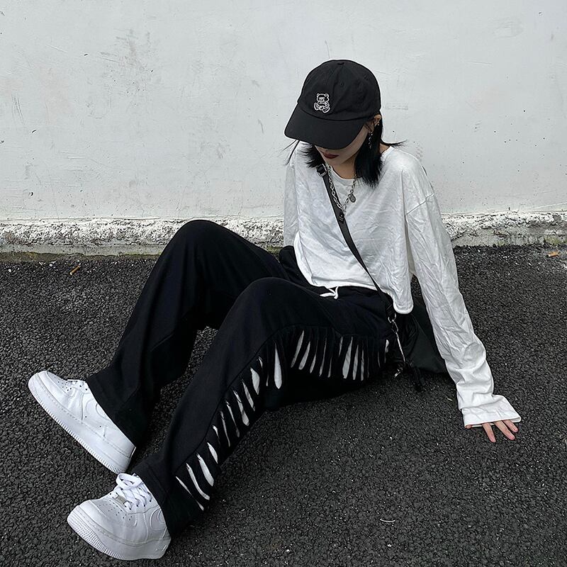 パンツレディース2020新バージョン原宿風穴ストレートパンツルーズ&シンワイドレッグカジュアルパンツトレンド Brother_is_Style77052479297