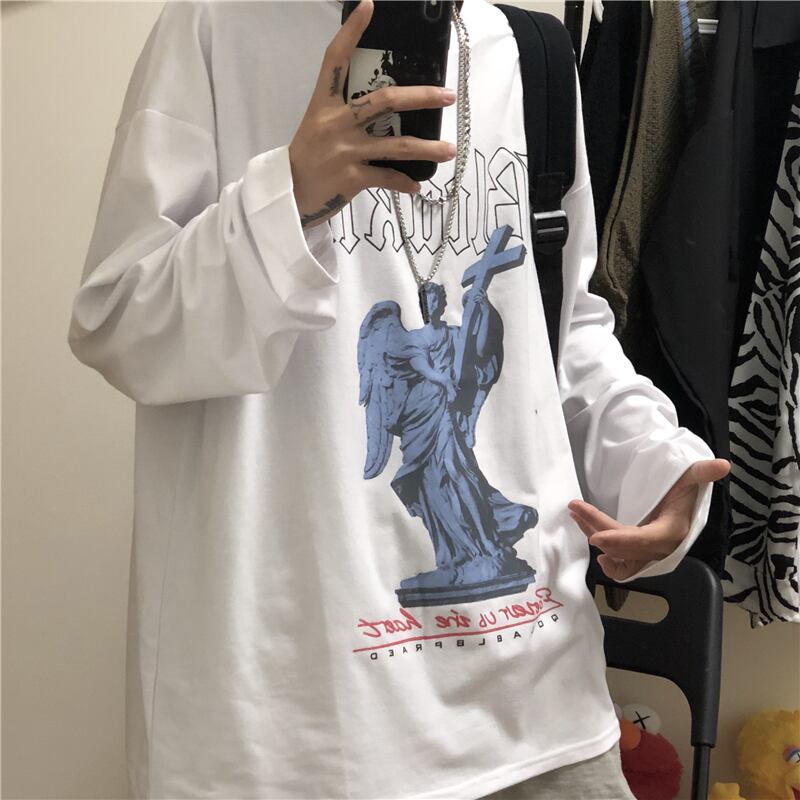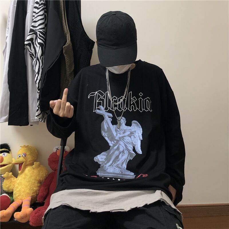 2020年秋新しい女性バージョンinsレトロヒップホップスタチューブラックトップルーズカップル長袖Tシャツトレンド Brother_is_Style19828052021